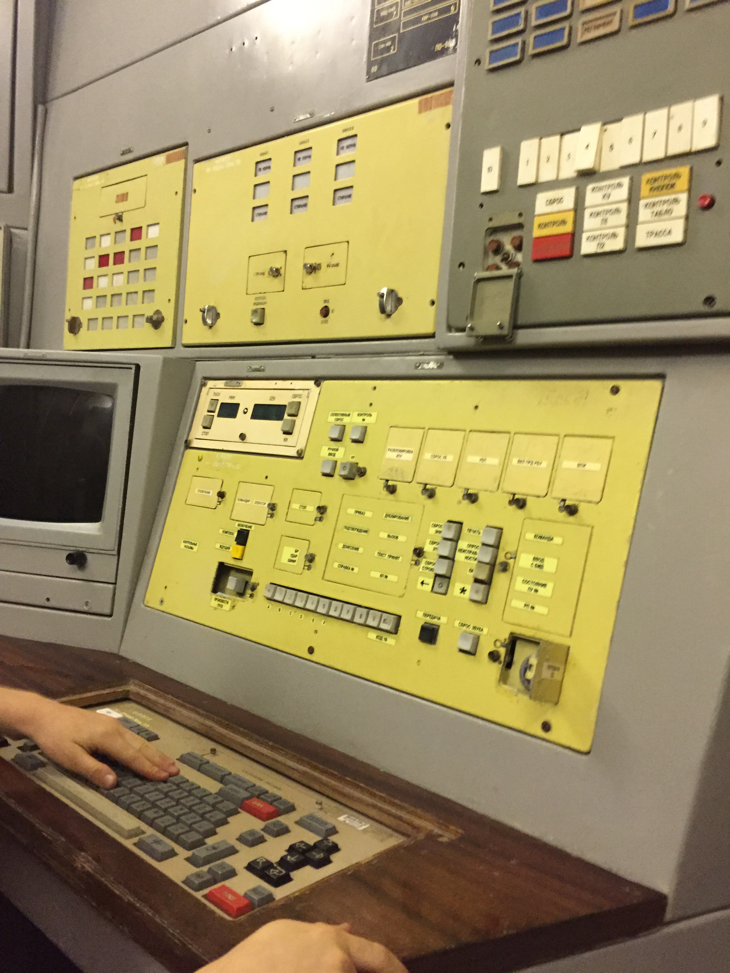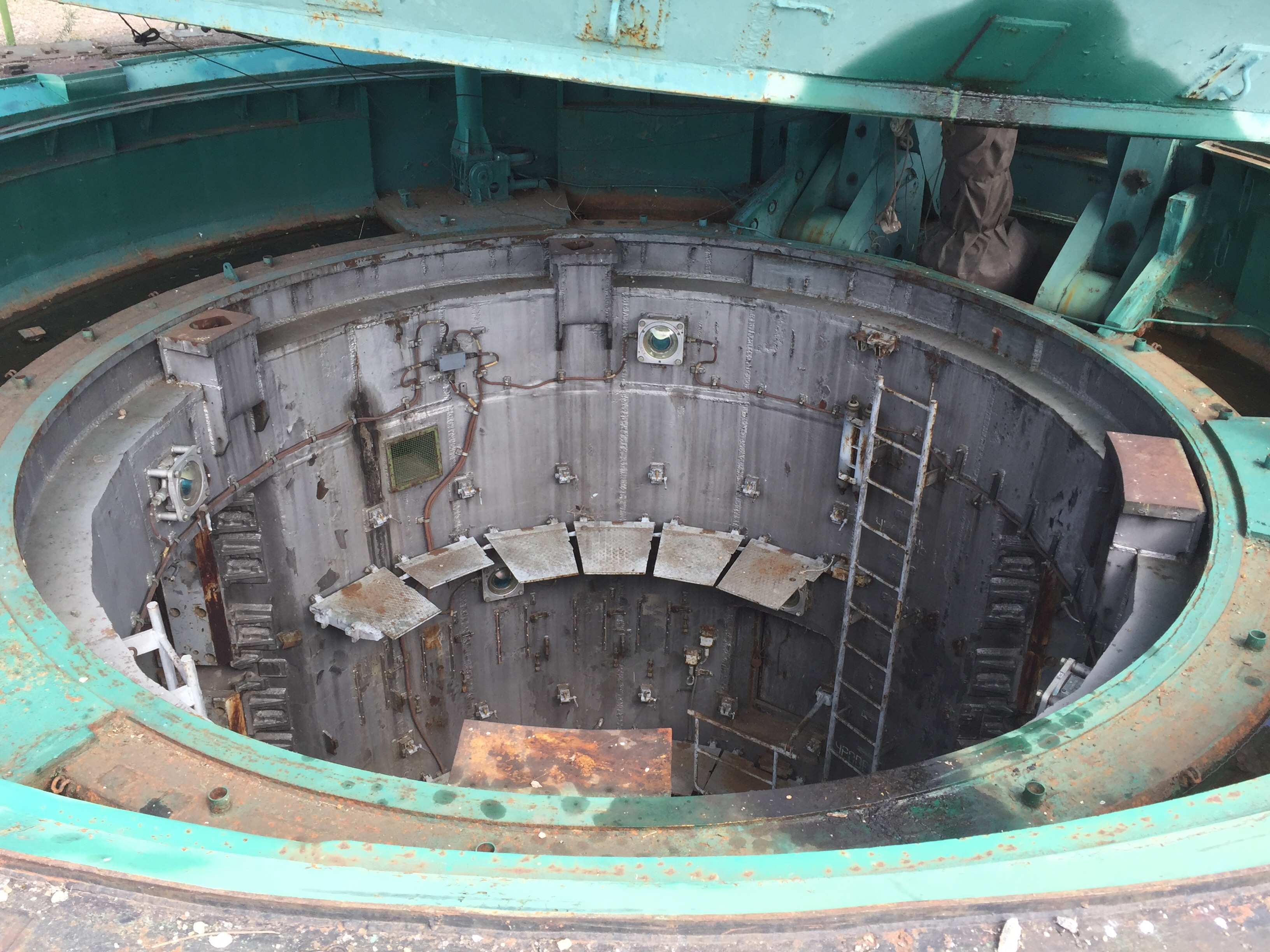 Und schließlich das absolute Highlight. Ein über 30 Meter tiefer Bunker. Das Kontrollzentrum im Falle eines Angriffs – und die Jungs dürfen – nach dem Durchstreifen mehrerer unterirdischer Gänge und Schächte – mit dem Aufzug bis auf die vorletzte Etage nach unten fahren – 30 Meter in die Tiefe. 30 Grad an der Oberfläche; 13 Grad in der Tiefe des Bunkers. Alles ist noch wie vor 15 Jahren eingerichtet, als die Anlage außer Dienst gestellt wurde. Inklusive des obligatorischen roten Telefons und der zwei Schlüssel, die zeitgleich von zwei Personen gedreht werden müssen, um einen Abschuss auszulösen. Und wieder darf man alles ausprobieren. Die Jungs (und damit meine ich alle vier) sind mittlerweile weit über das hinaus, was man Begeisterung nennt.