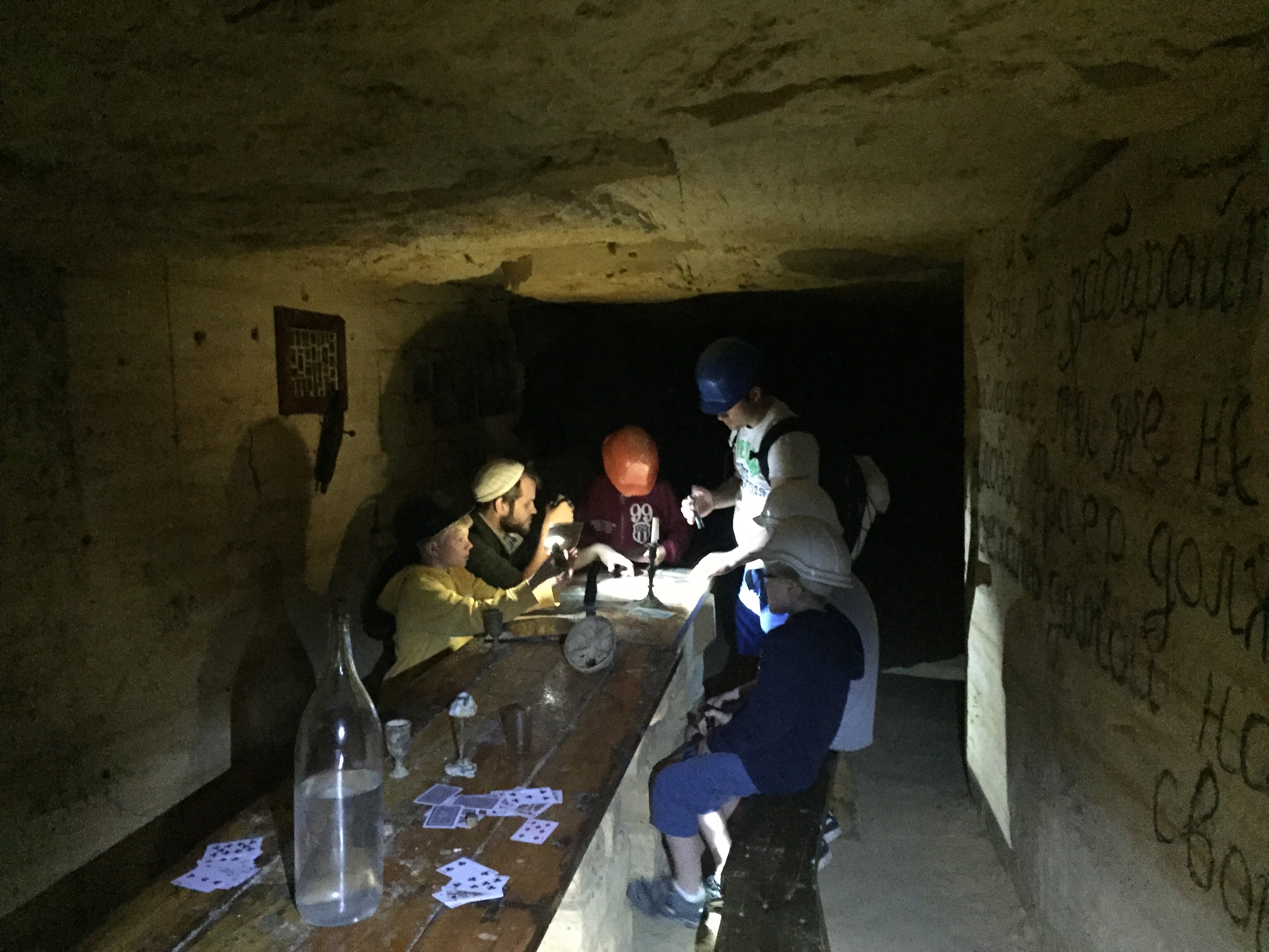 Abgesehen von der absoluten Dunkelheit, sobald die Lampen ausgeschaltet wurden und der hohen Luftfeuchtigkeit war es bei ca. 14 Grad während unserer zweistündigen Führung dort unten sehr angenehm und eine gute Abwechslung zu den 36 Grad an der Oberfläche. Zum Aufwärmen gab es für die Jungs zwischendurch heißen Tee. Und für Vova…. nun ja.. es ist die Ukraine und man hat ja einen Ruf zu verlieren 😀