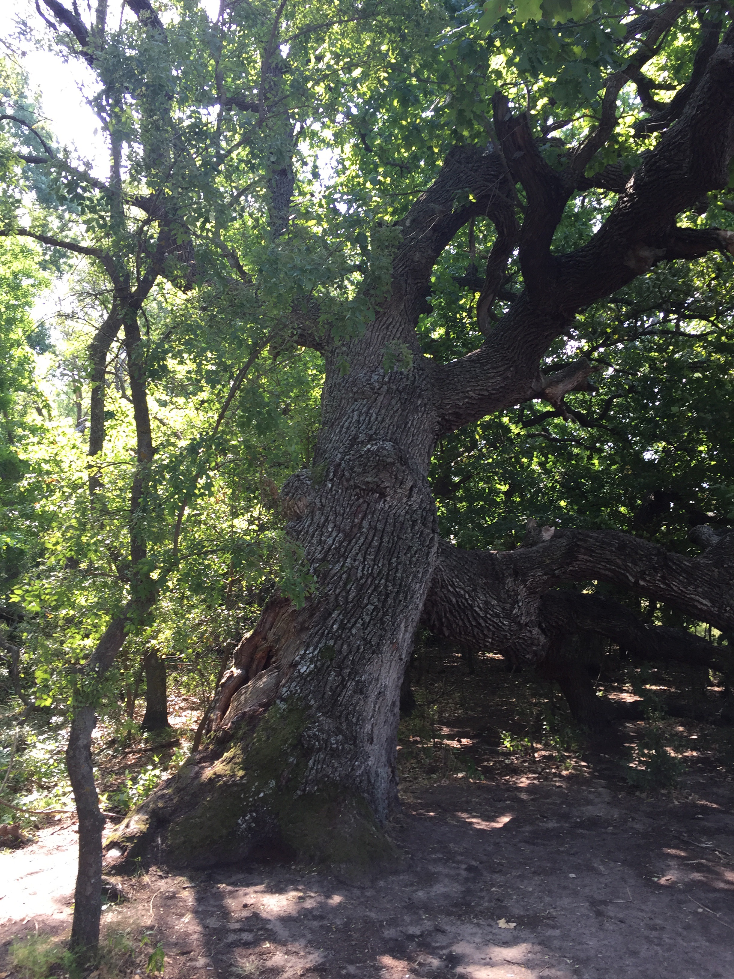 Und schließlich… der Wald. Das Wort Caraorman ist türkischen Ursprungs und bedeutet ’schwarzer Wald‘, da der Wald so dicht bewachsen ist, dass er dunkel und undurchdringlich erscheint. Wir hatten mit dem Boot festgemacht und waren auf den Jeep umgestiegen. Nach einem kurzem Abstecher in die Sanddünen fuhren wir ein ganzes Stück in den Wald hinein, um unter anderem zur ‚knieenden Eiche‘ zu gelangen. Ein vierhundert Jahre alter, riesiger Baum umwachsen von Lianen in einem subtropischen Wald. Angesichts dieser imposanten Erscheinung waren sogar die Jungs plötzlich ganz leise und voller Bewunderung für die Natur um sie herum.