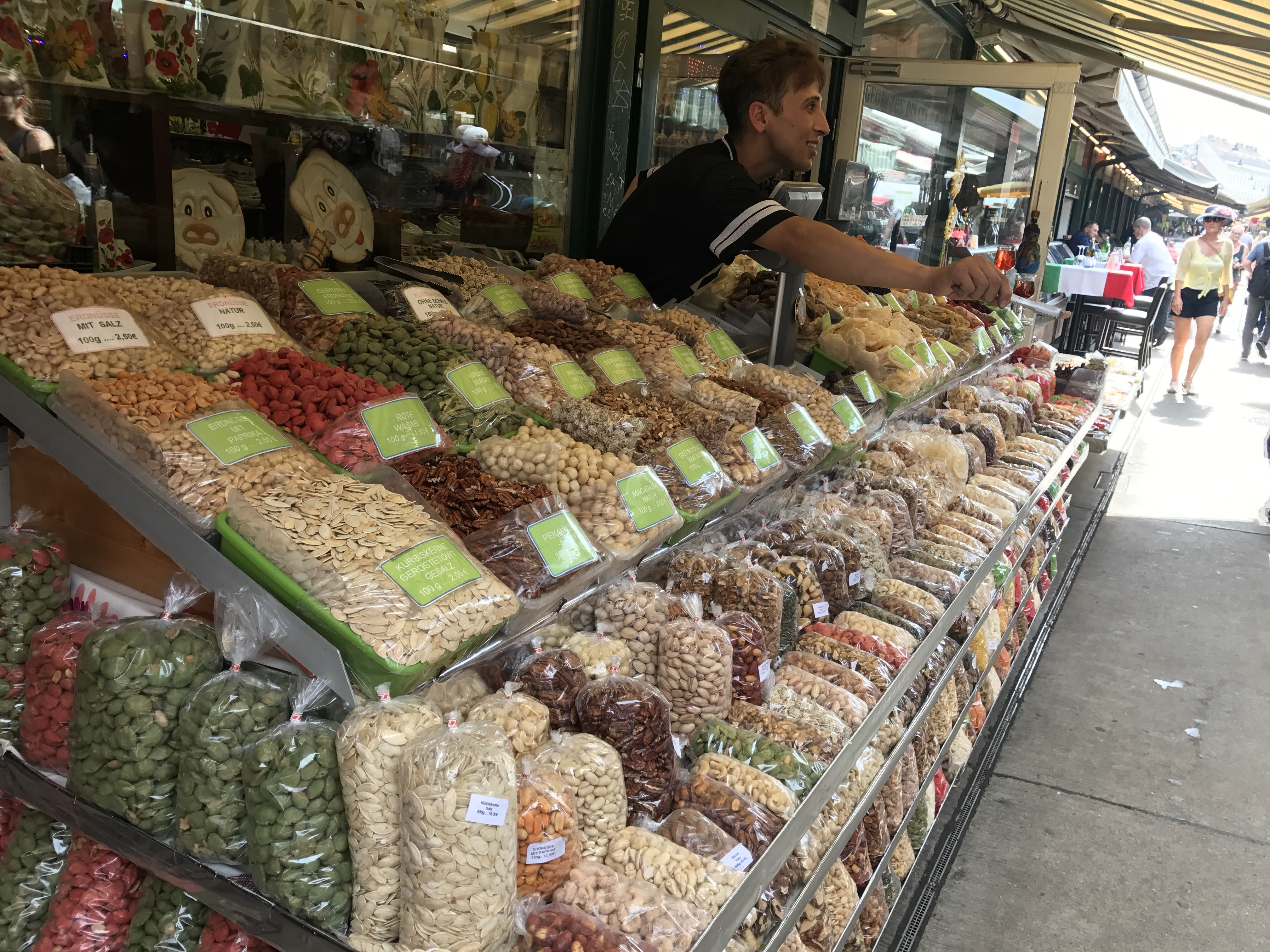 Meinen kulinarischen Vorlieben treu bleibend haben wir als nächstes den ‚Naschmarkt‘ im 6. Bezirk angesteuert. Hier gibt es einfach alles zu kaufen.