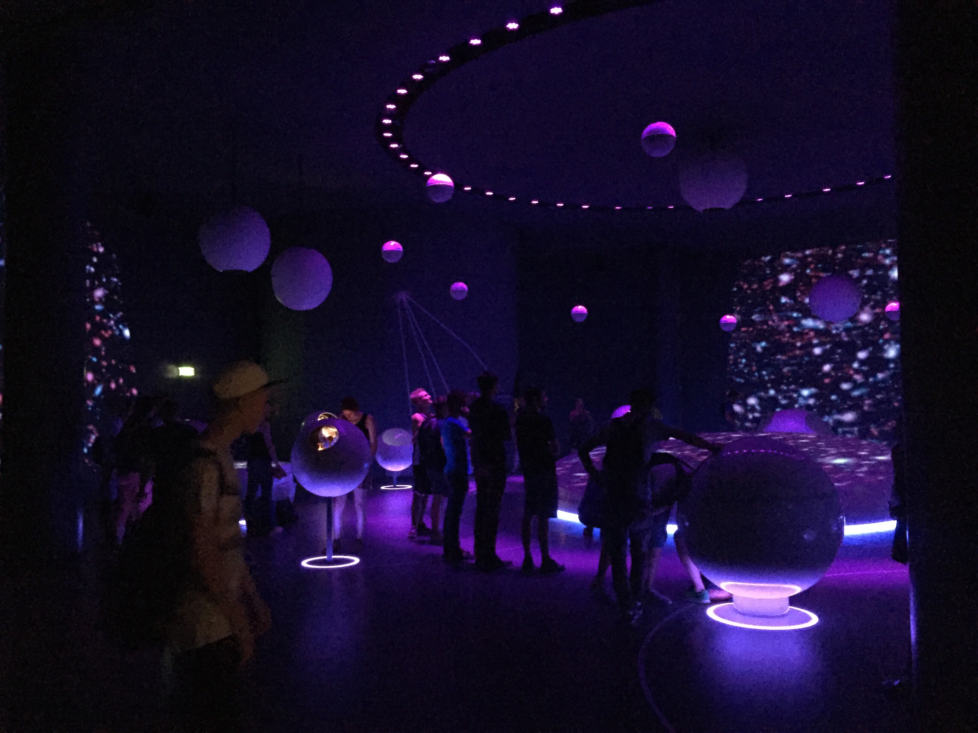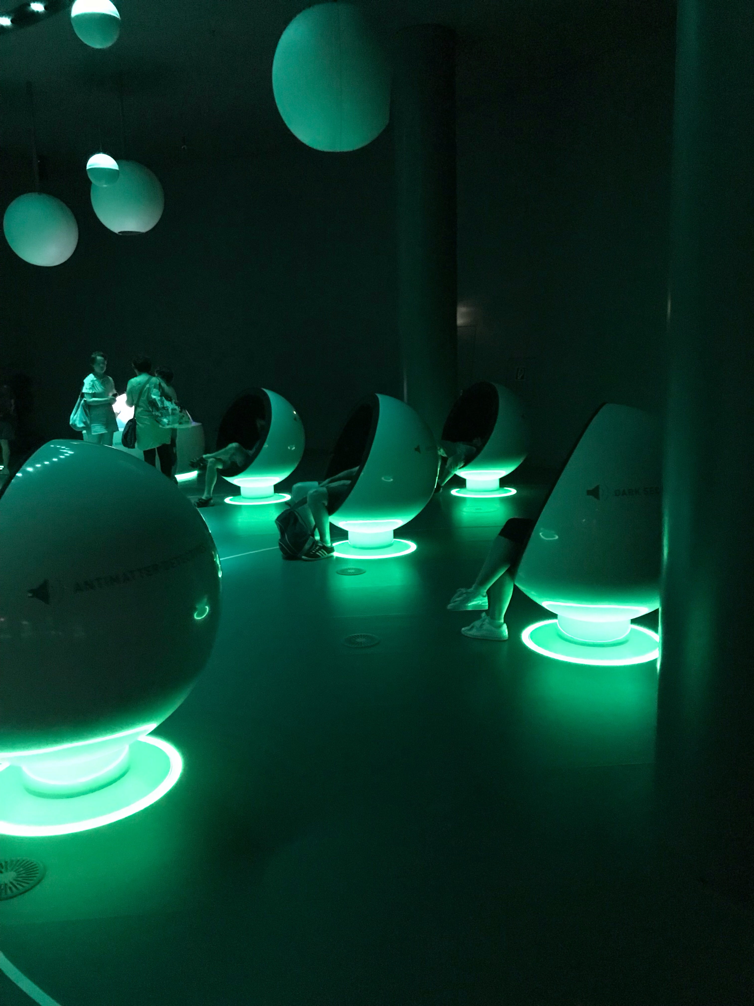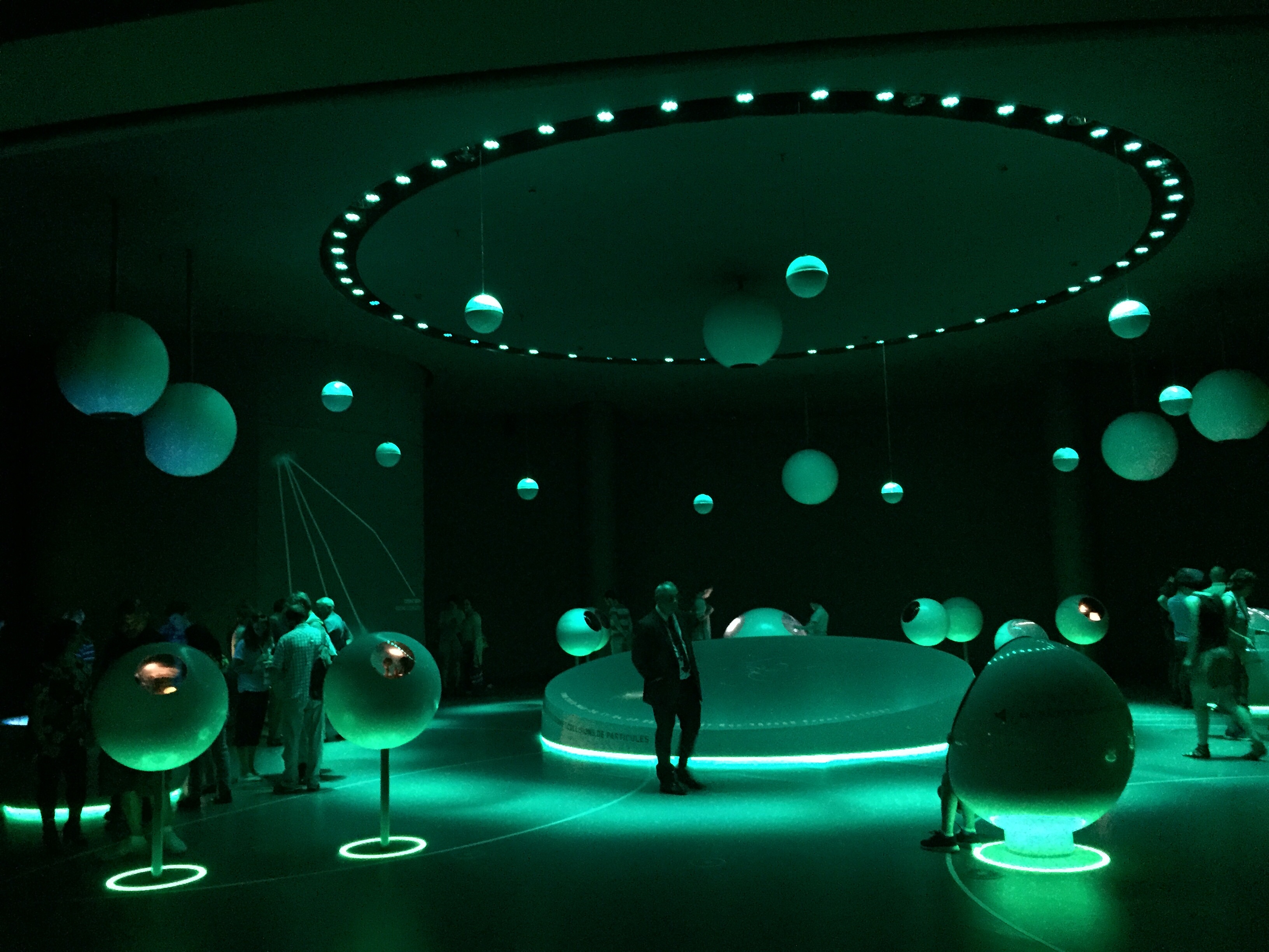 Aber den Ausstellungen gelingt es, ein recht klares Verständnis dafür zu schaffen, was das Ziel der Untersuchungen im CERN ist, wie die Experimente in etwa ablaufen und wie die Ergebnisse gemessen und ausgewertet werden. Die Ausstellungen sind großartig gemacht – viele Animationen und Filme, Stationen an denen man selbst aktiv werden kann, ebenso wie gemütliche Sessel in denen einem über Lautsprecher Dinge erklärt werden. All das in futuristischem Design mit Licht- und 3D-Effekten. Wirklich klasse gemacht.