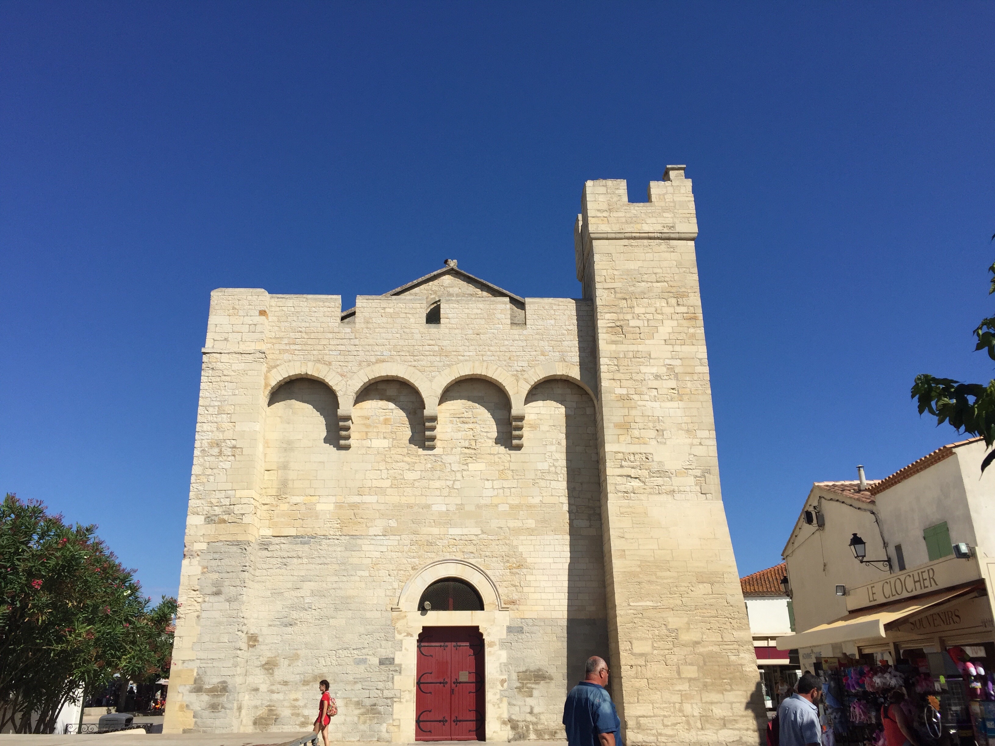Da wir nun schon einmal im Rhône-Delta waren (zwischen den beiden Mündungsarmen der Rhône liegt die Camargue), entschieden wir uns noch bis nach Saintes-Maries-de-la-Mer weiterzufahren – ein kleiner Touristen- und Wallfahrtsort direkt am Meer mit einer hübschen Kirche im Zentrum und alten kleinen Häusern drumherum, von denen viele als Restaurant oder Café auf Touristen warten. Es war definitiv Zeit für einen kleinen Croque-Monsieur und das eine oder andere Crêpe sucrée. 🙂