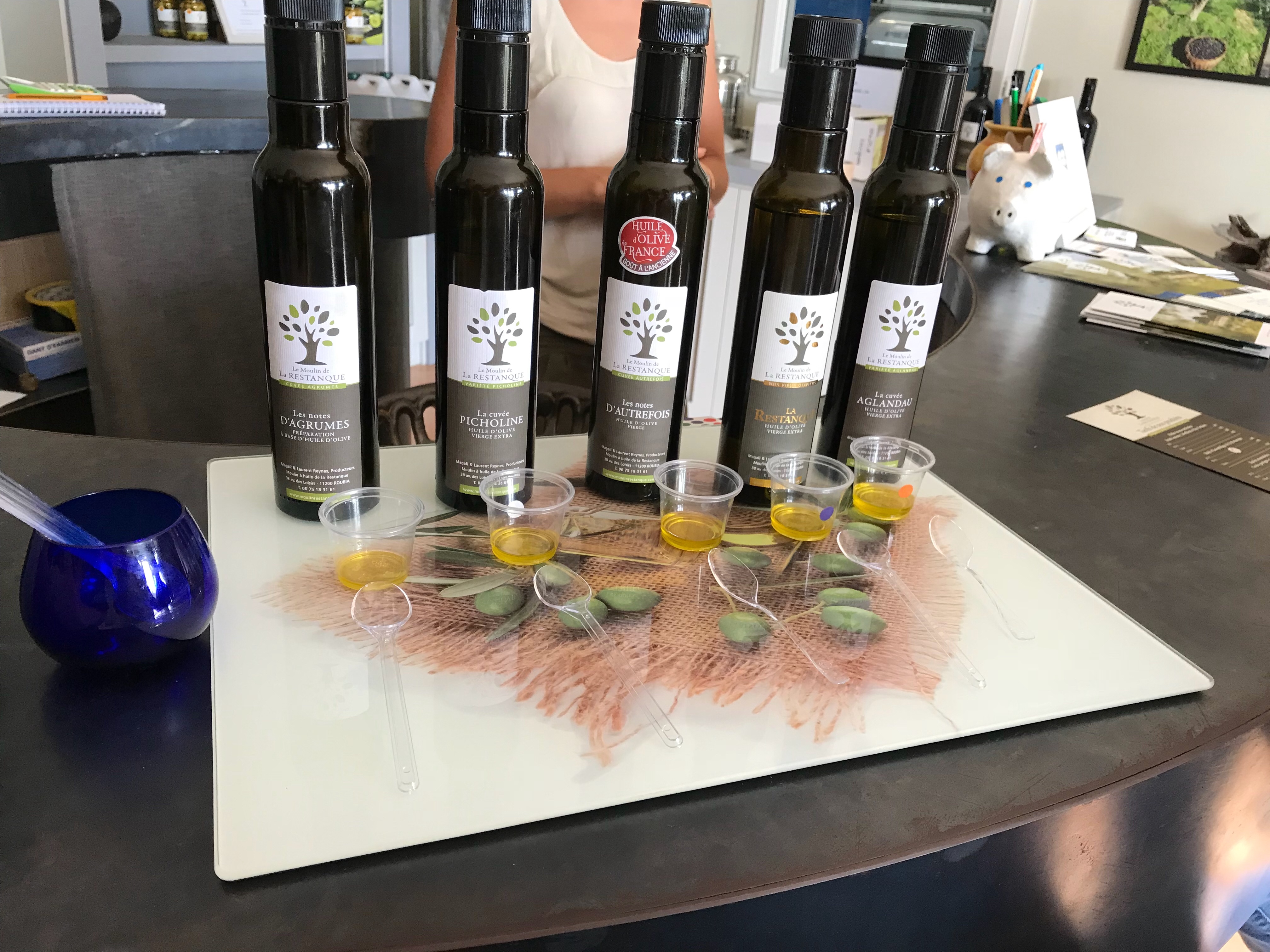 Ziel war die Moulin à huile – die Olivenölmühle von Roubia, in der aus den verschiedenen vor Ort geernteten Olivensorten unterschiedliche Olivenöle und allerlei andere Produkte aus Oliven und deren Öl hergestellt werden.
