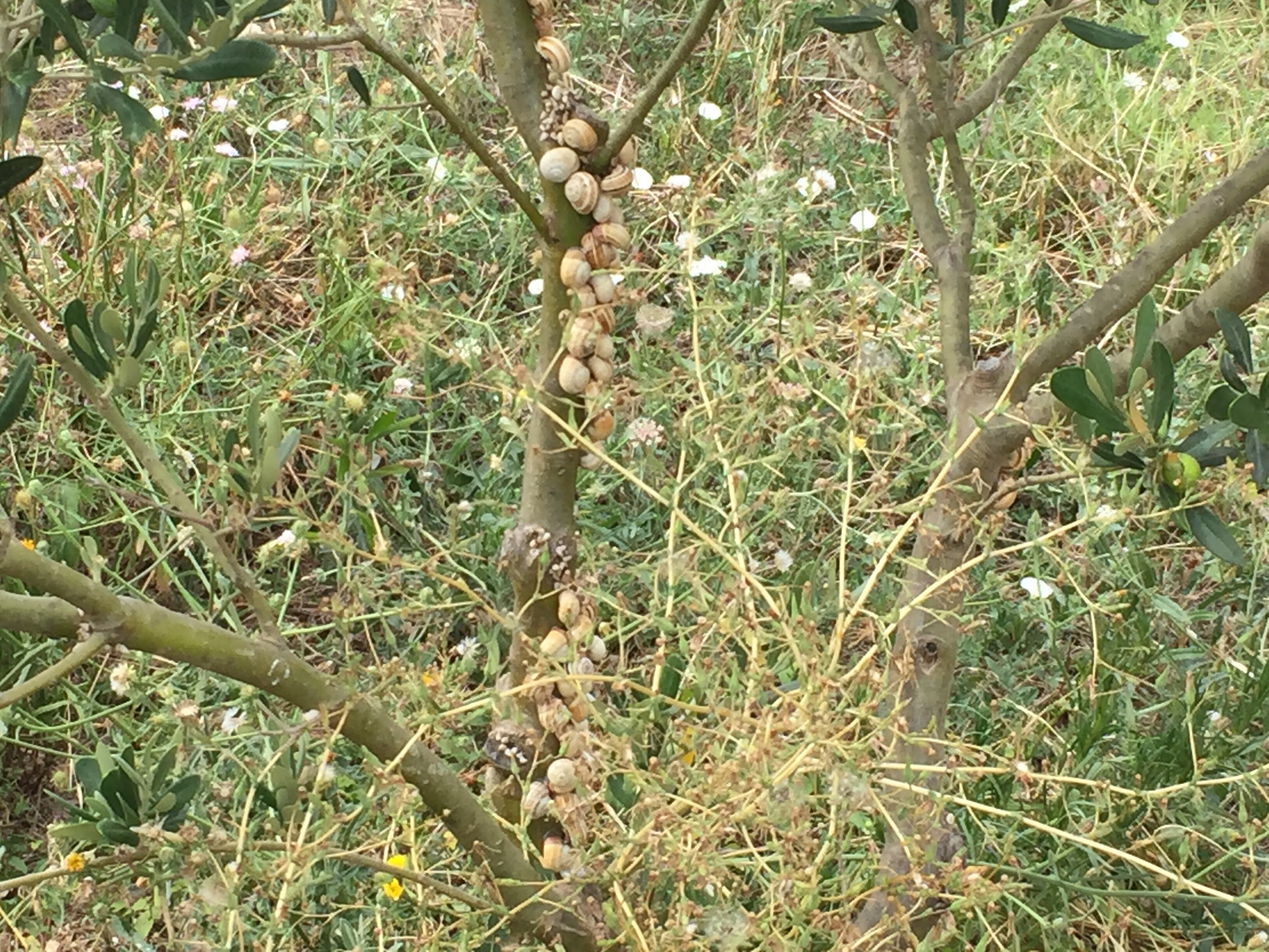 1. In dem Abschnitt des Kanals, den wir heute besucht haben, vor allem aber an den Olivenbäumen gibt es Unmengen von Schnecken. Da sie den Bäumen und Oliven aber nichts tun, lässt man sie einfach in Ruhe.