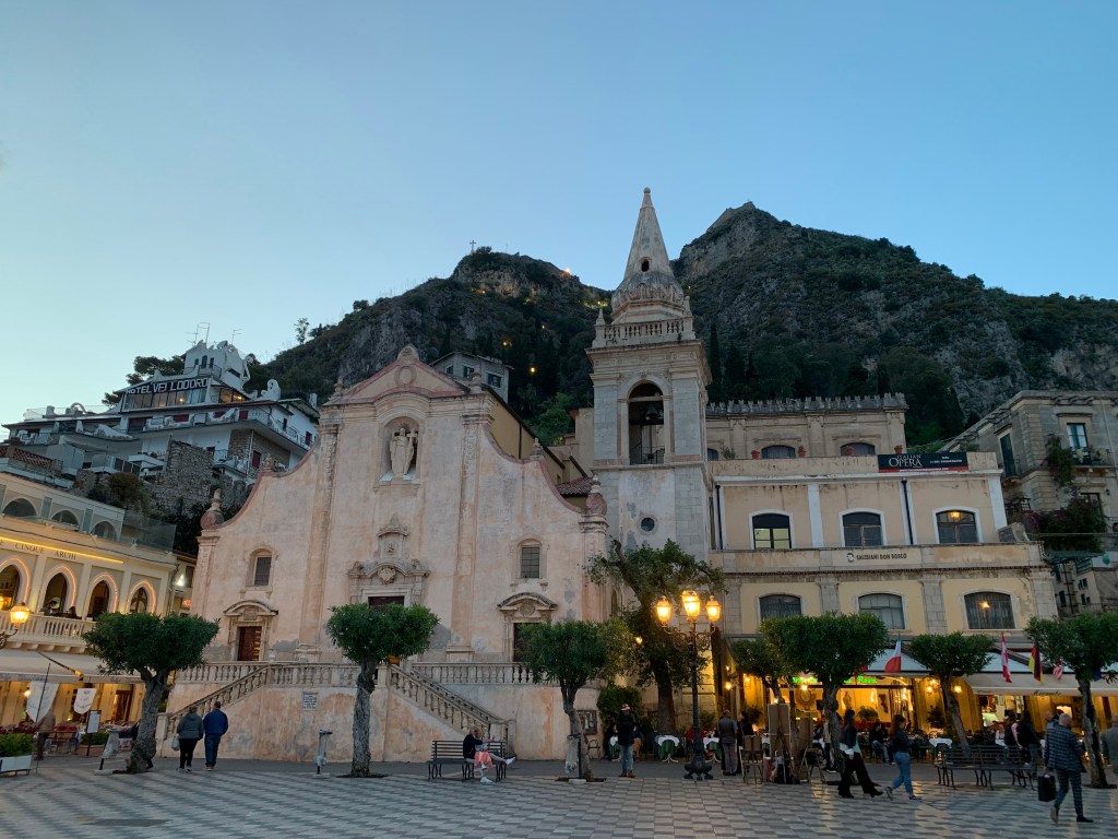 Taormina ist einfach zauberhaft. Ein kleines Küstenstädtchen, zum größten Teil in etwa 200m Höhe auf einem Felsen – dem Monte Tauro – gelegen und mit allem ausgestattet, was es für einen Bilderbuchort braucht – wunderbar mildes Klima, Strände, eine niedliche kleine Insel, reichlich historische Stätten und Kirchen, eine wunderhübsche Fußgängerzone, allerhand Ausflugsziele in naher Umgebung und einen aktiven Vulkan im Hintergrund. Was will man mehr?!  🙂