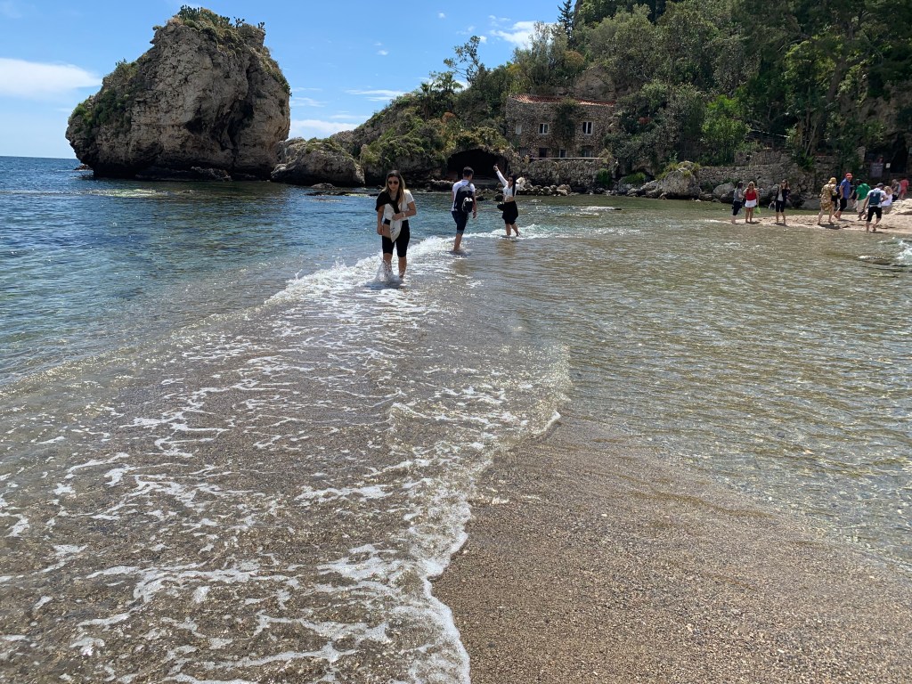 Am Fuß des Monte Tauro liegt der untere Teil von Taormina direkt am Meer. Und genau vor dem Örtchen – über eine Sandbank zu Fuß zu erreichen – Isla Bella. Eine wunderschöne kleine Insel mit vielen exotischen Pflanzen und Tieren. Ein wirklich schönes Fleckchen Erde mitten im glasklaren türkisfarbenen Meer.