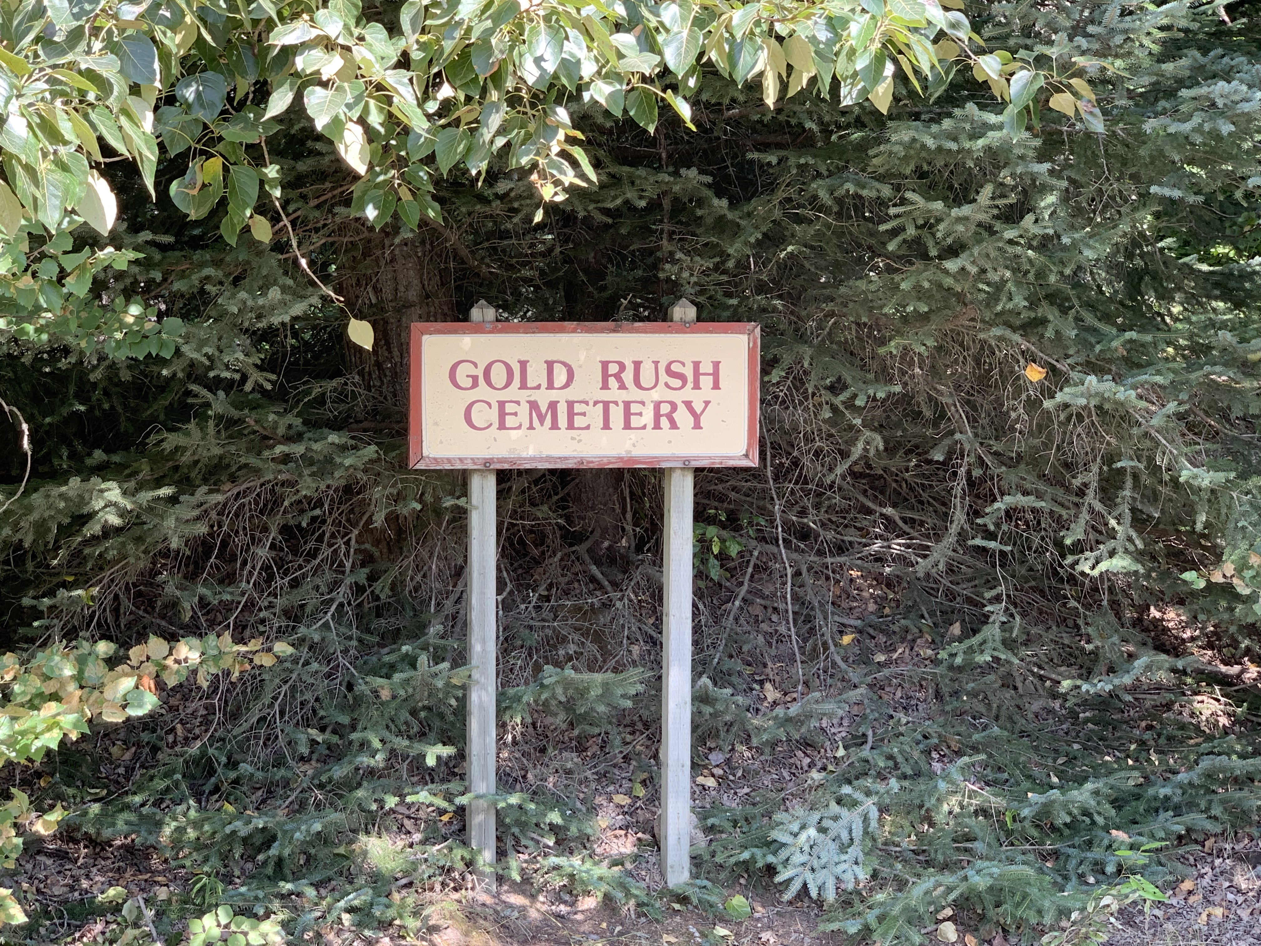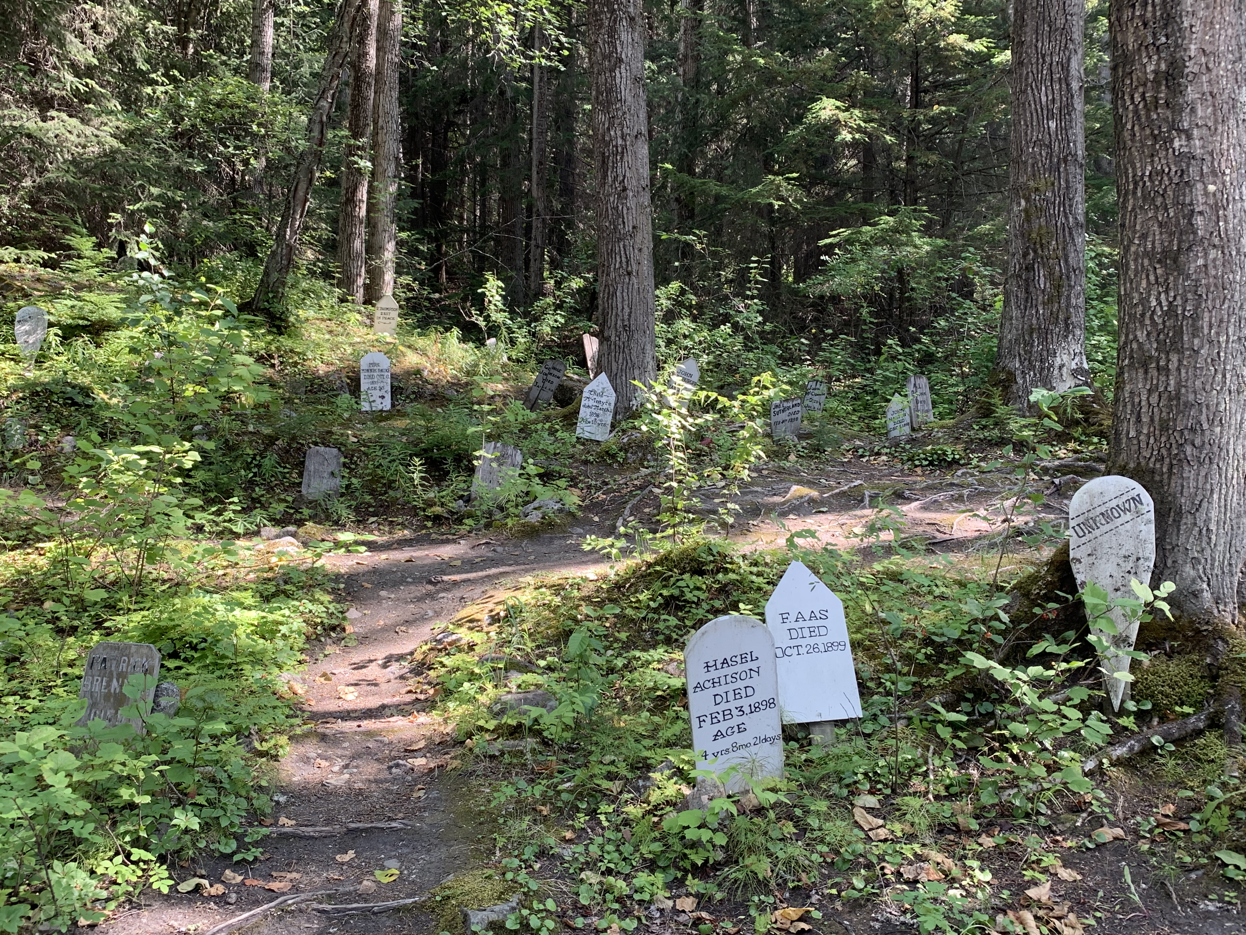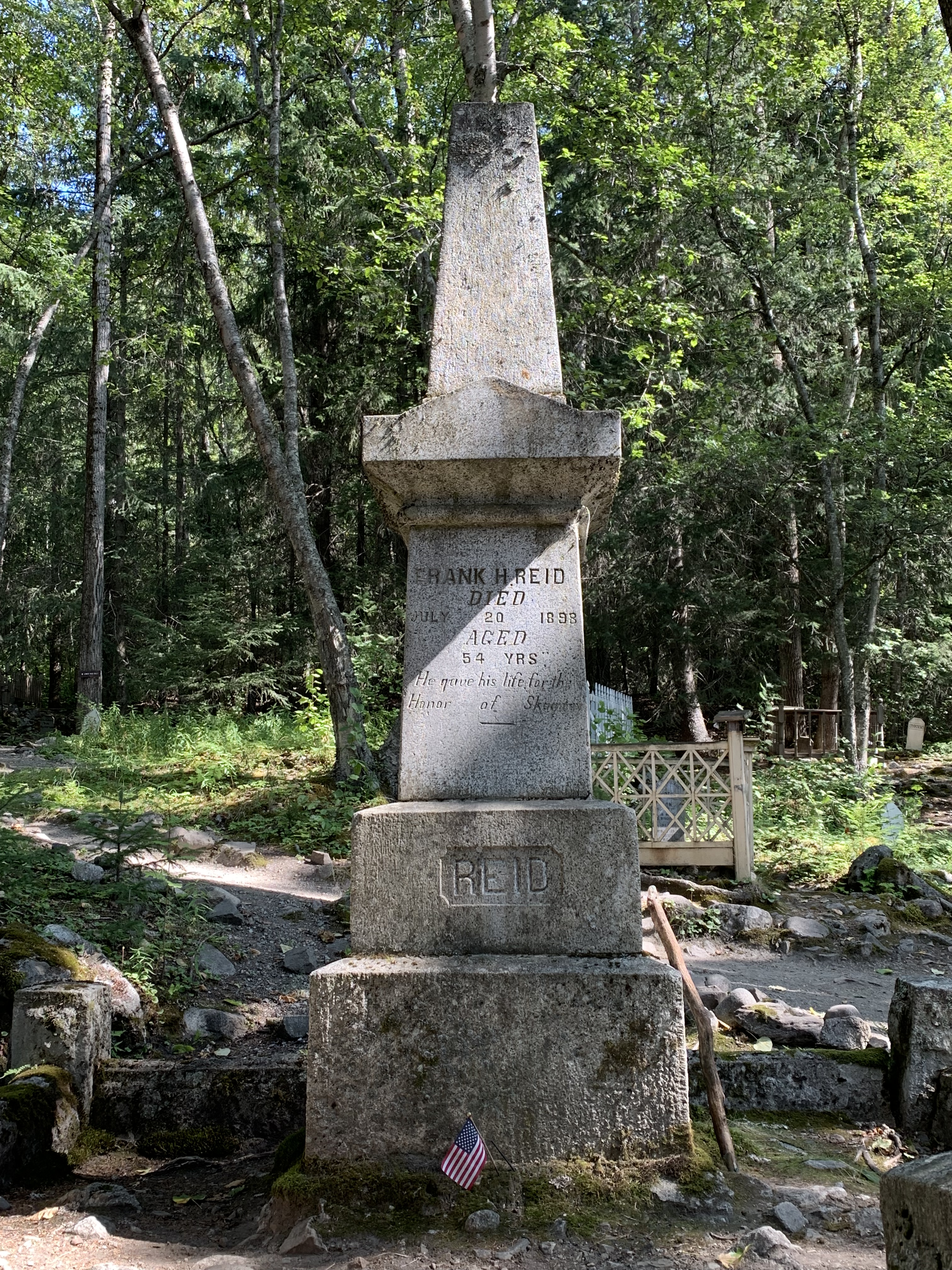 Zu den beiden gibt es eine sehr hübsche Anekdote, die auch den Jungs so gut gefallen hatte, dass sie den ca. 5km langen Weg zum Friedhof fast ohne größere Beschwerden zurücklegten, auch wenn es sich um DEN einen Tag in ungefähr 10 Jahren handelte, an dem es in Skagway in Südalaska keine Wolke am Himmel und 28 Grad Celsius gab.
