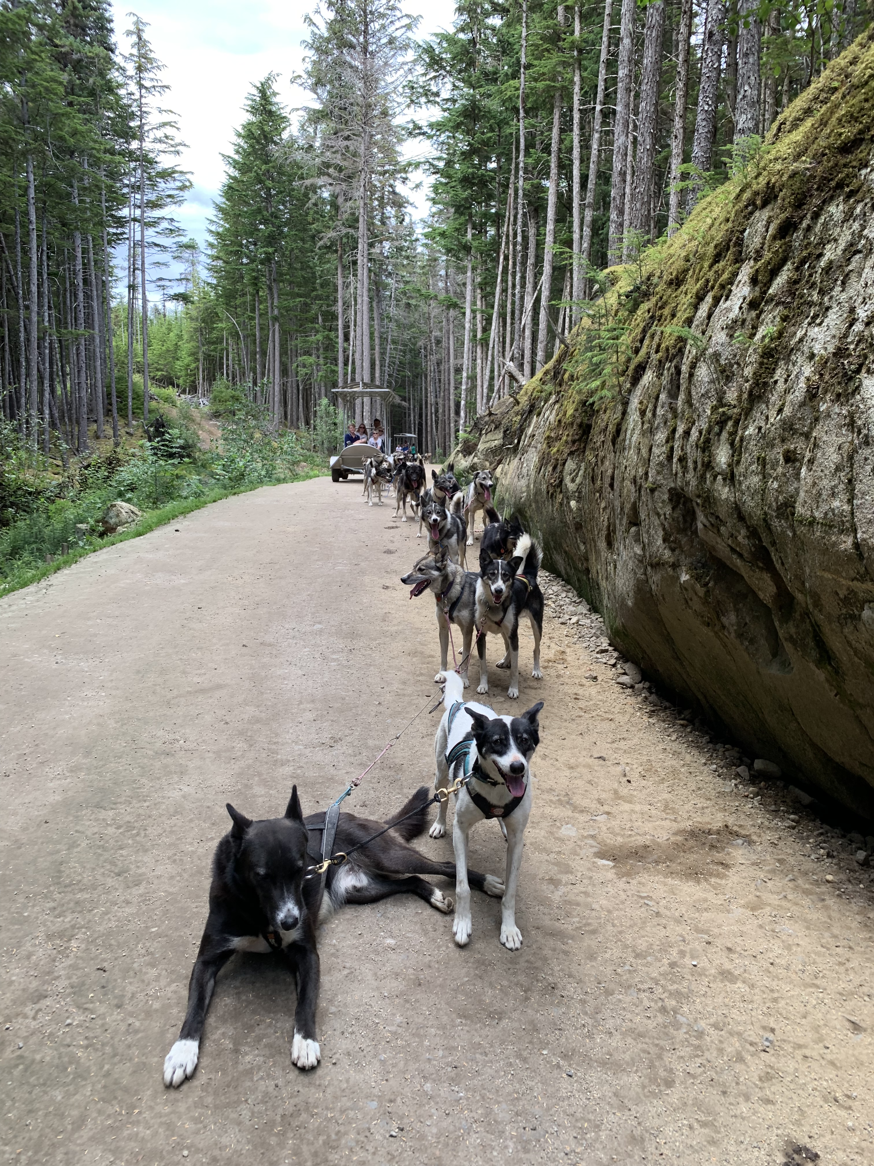 In Dyea trafen wir (neben einigen anderen Mushern und ihren Hunden) Becky mit ihren 29 Alaskan Huskies. Sie kommt aus Willow und plant tatsächlich nächstes Jahr auch am Iditarod teilzunehmen. Dafür trainiert sie auch im Sommer mit ihren Hunden, wenn auch für die Touristen ein wenig anders als mit ihrem Einzelschlitten im Winter. Die Steuerung der Hunde erfolgt übrigens ausschließlich über Kommandos – keine Leine o.ä. Sehr beeindruckend.
