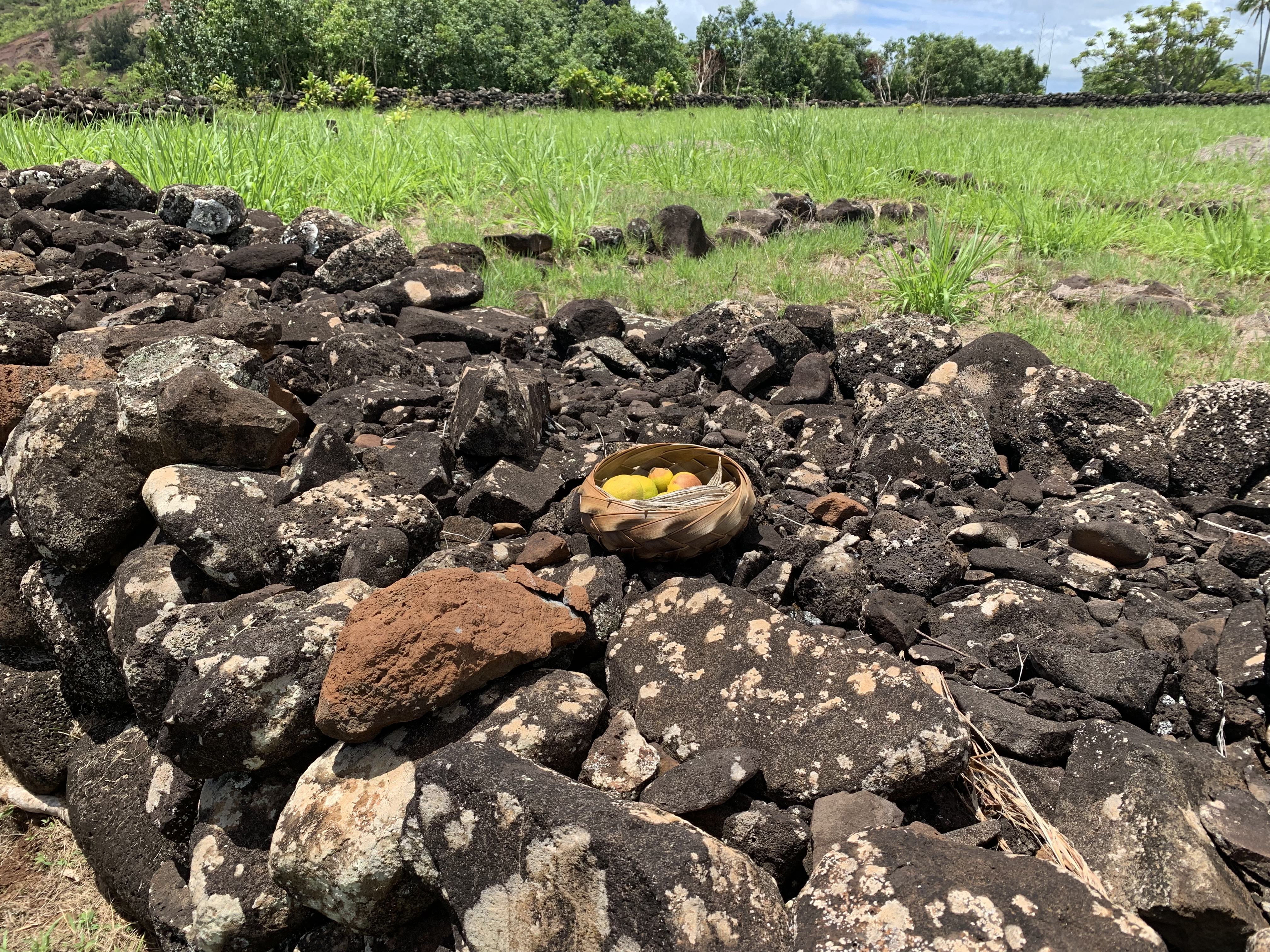 Die Grundstruktur besteht immer aus einem nicht allzu hohen Rahmen von aufgeschichteten Lavasteinen. Im Inneren fanden sich dann entsprechende religiöse Einrichtungen wie ein Altar oder heilige Statuen. Alles sehr schlicht.