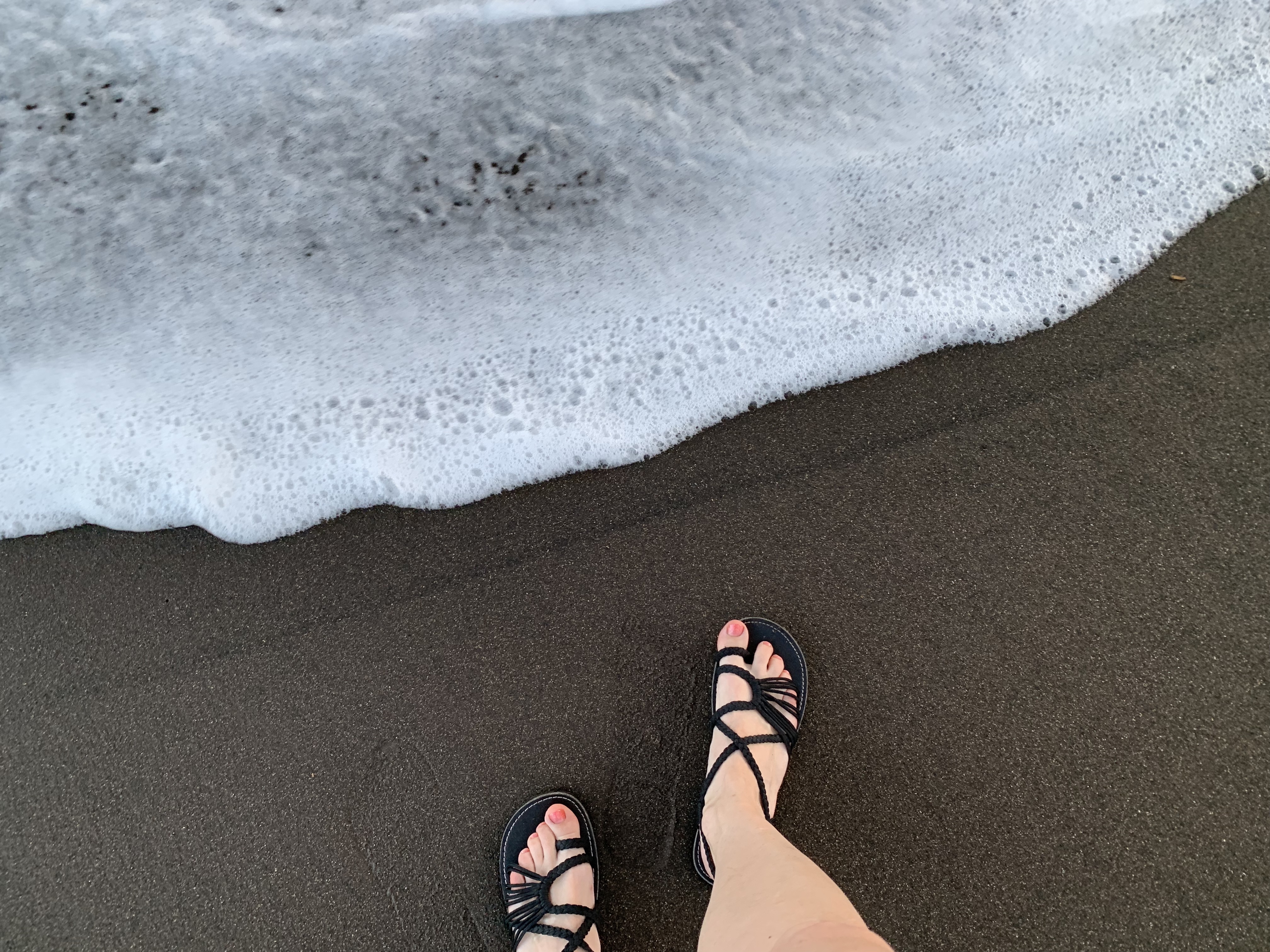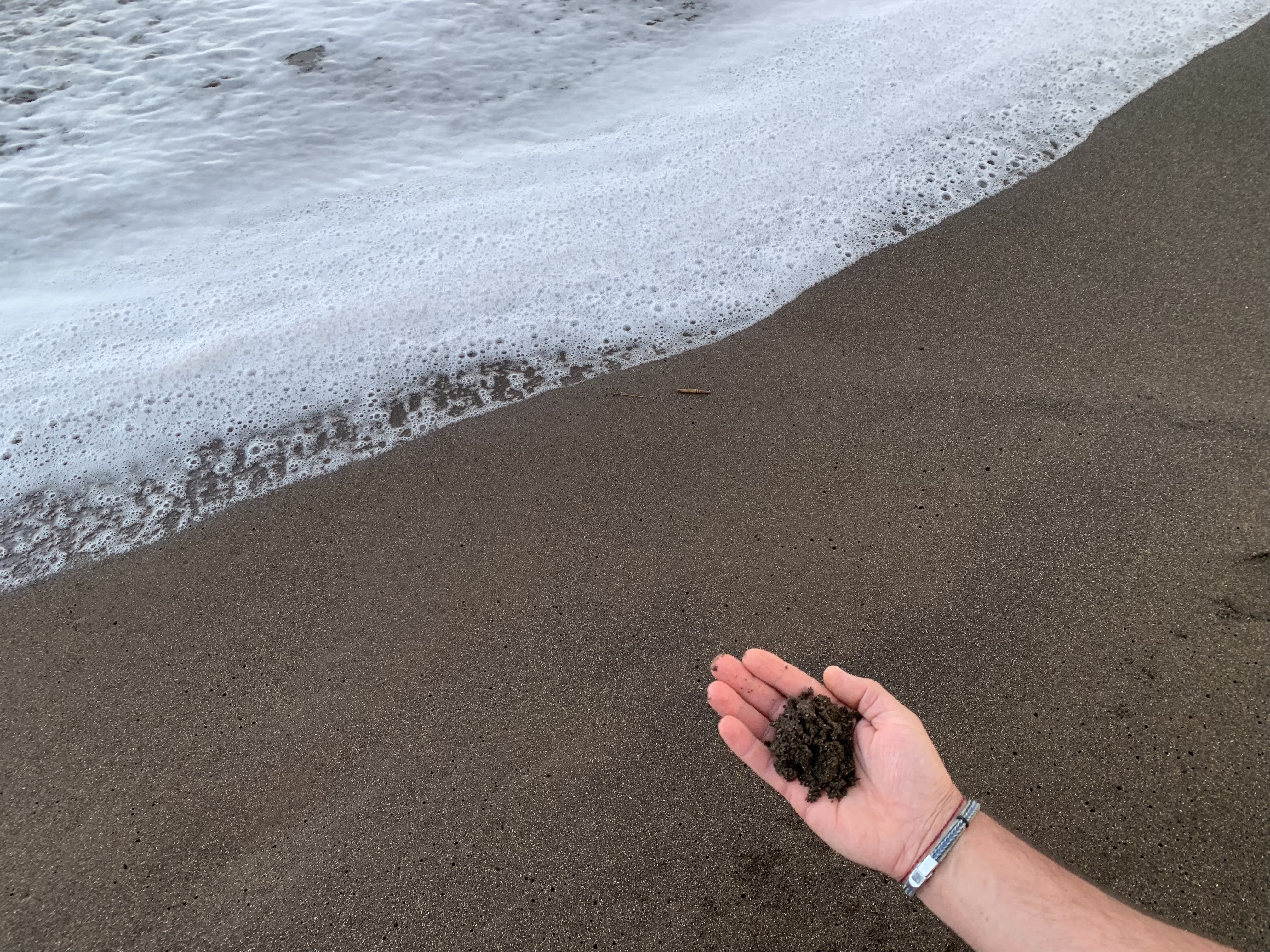 Als Tagesabschluss noch einmal Schwimmen im Meer… dazu der Sonnenuntergang über einem Strand mit schwarzem Sand. Hier muss dann doch wohl so etwas wie das Paradies sein. 🙂