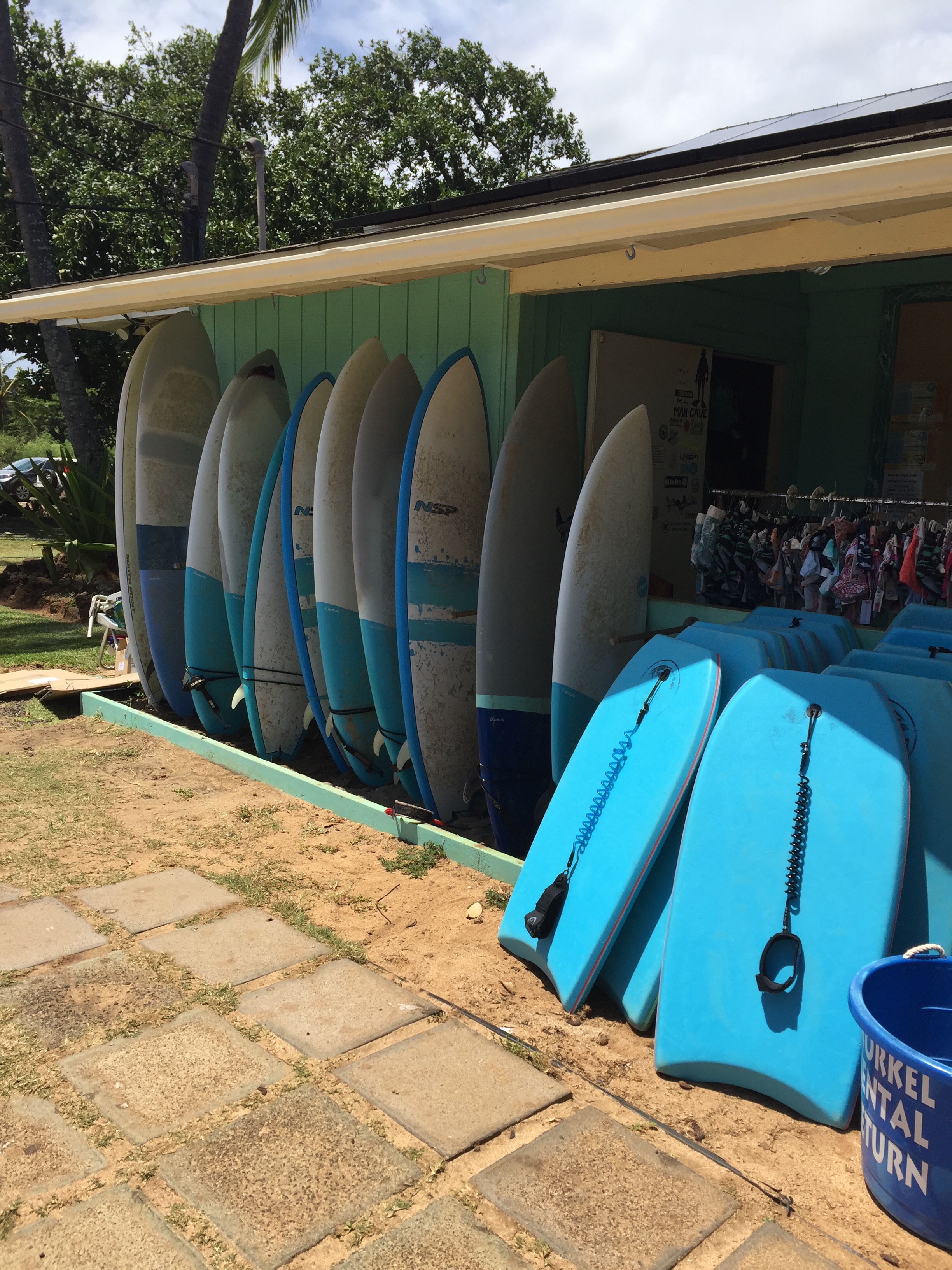 Zusätzlich zu den Schnorchelsachen hatten wir für die Jungs auch so genannte Boogie Boards ausgeliehen – quasi der kleine Bruder des Surfbretts. Vor allem die beiden Älteren (für Nummer 3 waren die Wellen doch ein wenig zu stark) stellten sich beim Wellenreiten mit den Boogie Boards ziemlich gut an und da bei Schildkröten, Fischen und Wellenreiten jeder ausgiebig auf seine Kosten kam, wurde dieser Tag ein Strandtag am Poipu Beach.