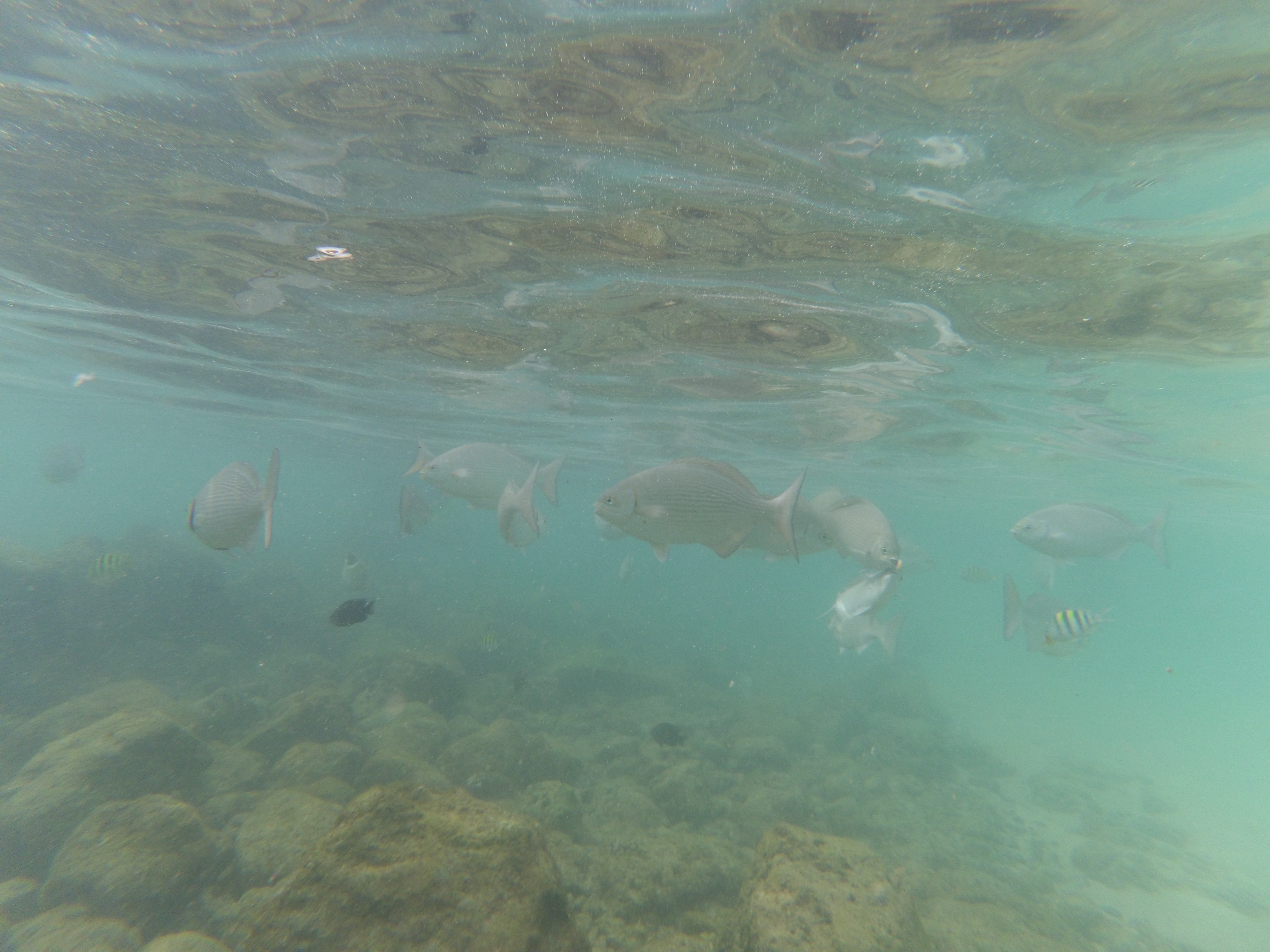 Auch hier ist das Bildmaterial überschaubar gut, was aber in diesem Fall eher daran lag, dass ich im flachen Wasser mit meinen Flossen dauernd den Sand vom Boden aufgewirbelt habe… eigentlich war das Wasser glasklar und die Sicht hervorragend – außer in den Momenten, wenn sich eine besonders große Welle den Weg bahnte. Naja, ich übe noch. (An dieser Stelle ein großes Dankeschön an den Bereitsteller der Unterwasserkamera. 😘)