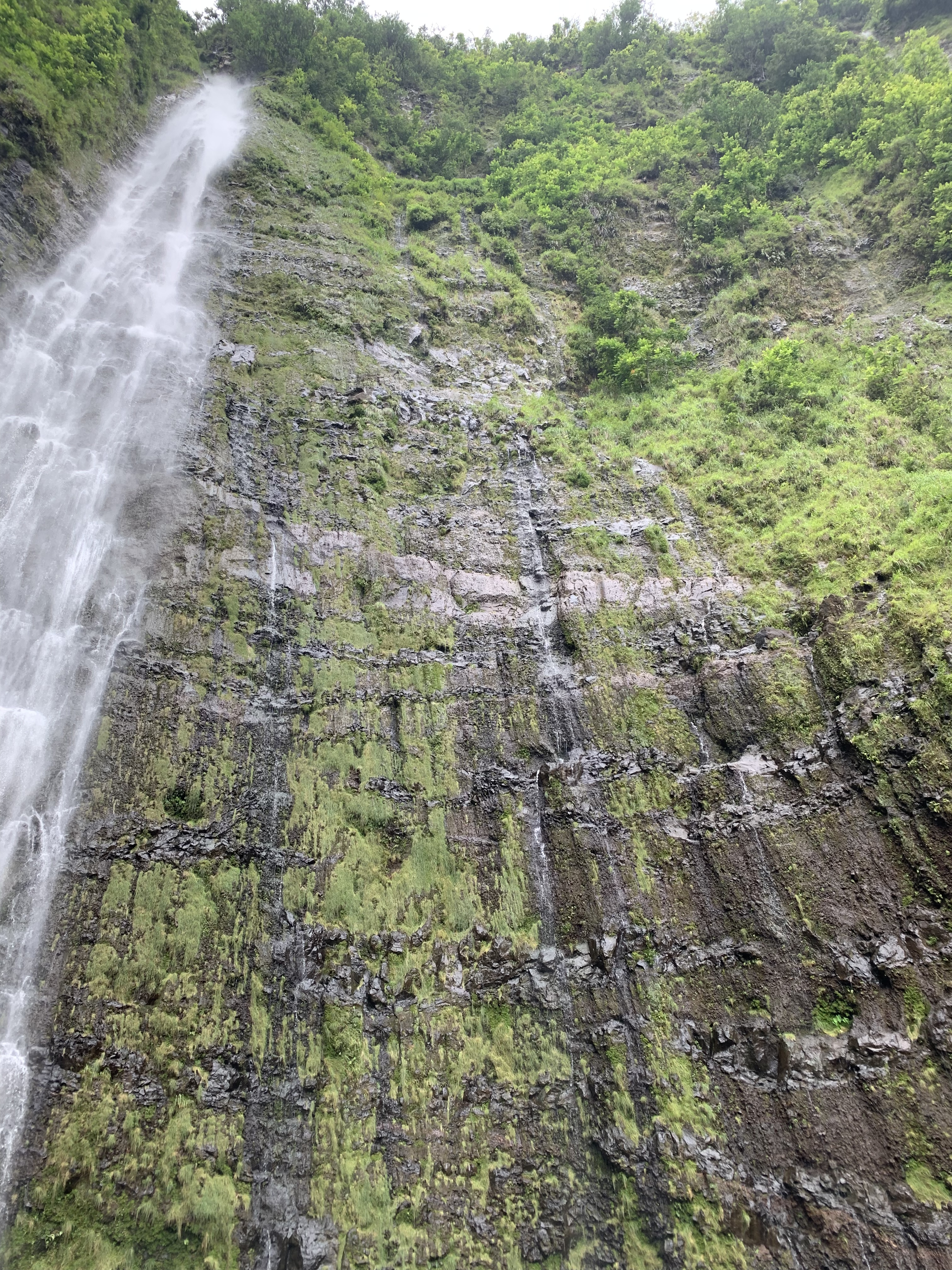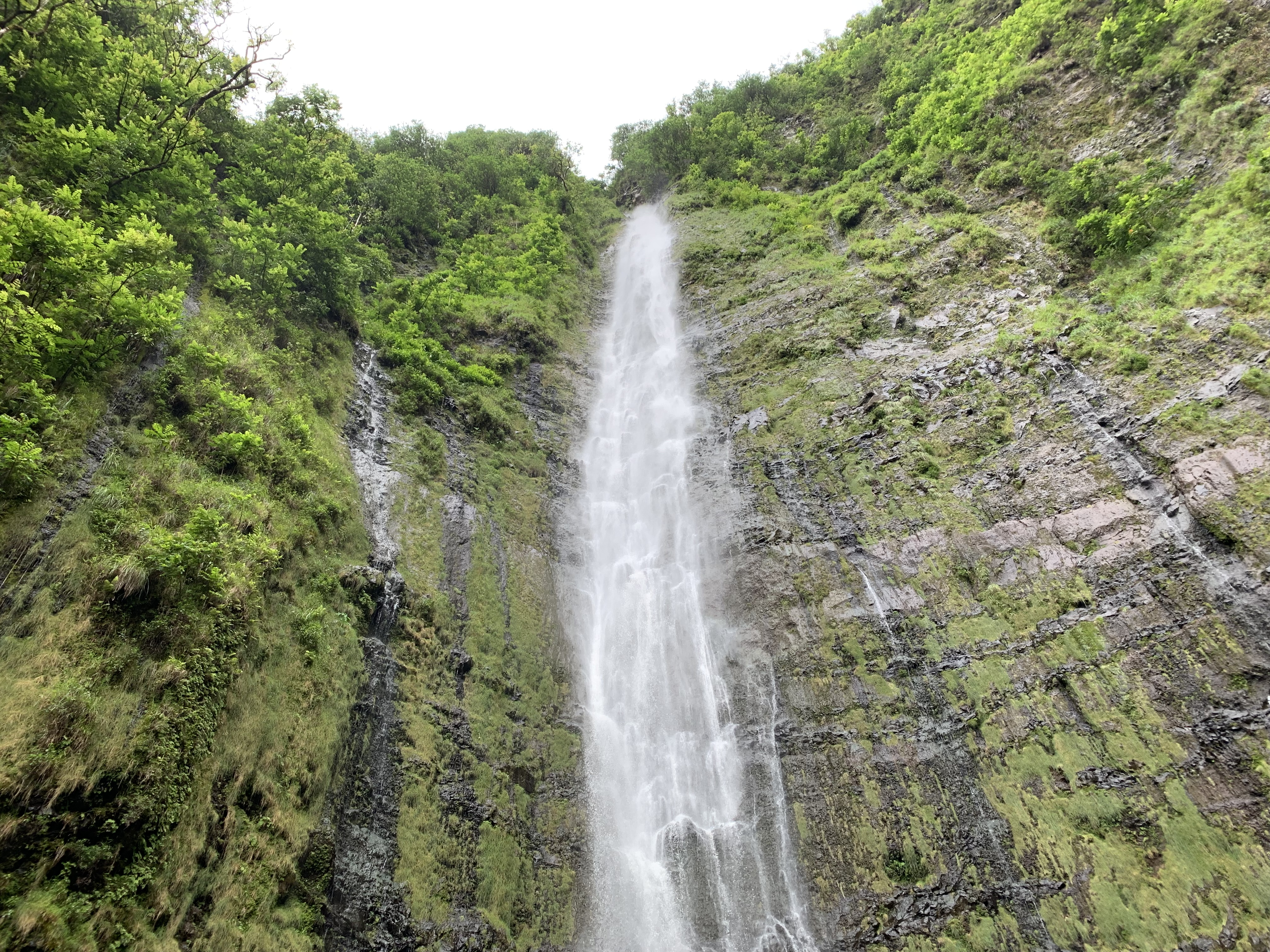 Und zum Schluss die über 120m hohen Waimoku Falls – der höchste Wasserfall auf Maui. Bei dem man auch in einiger Entfernung noch den Wind spürt, der entsteht, wenn das Wasser mit gewaltiger Kraft unten auftrifft.