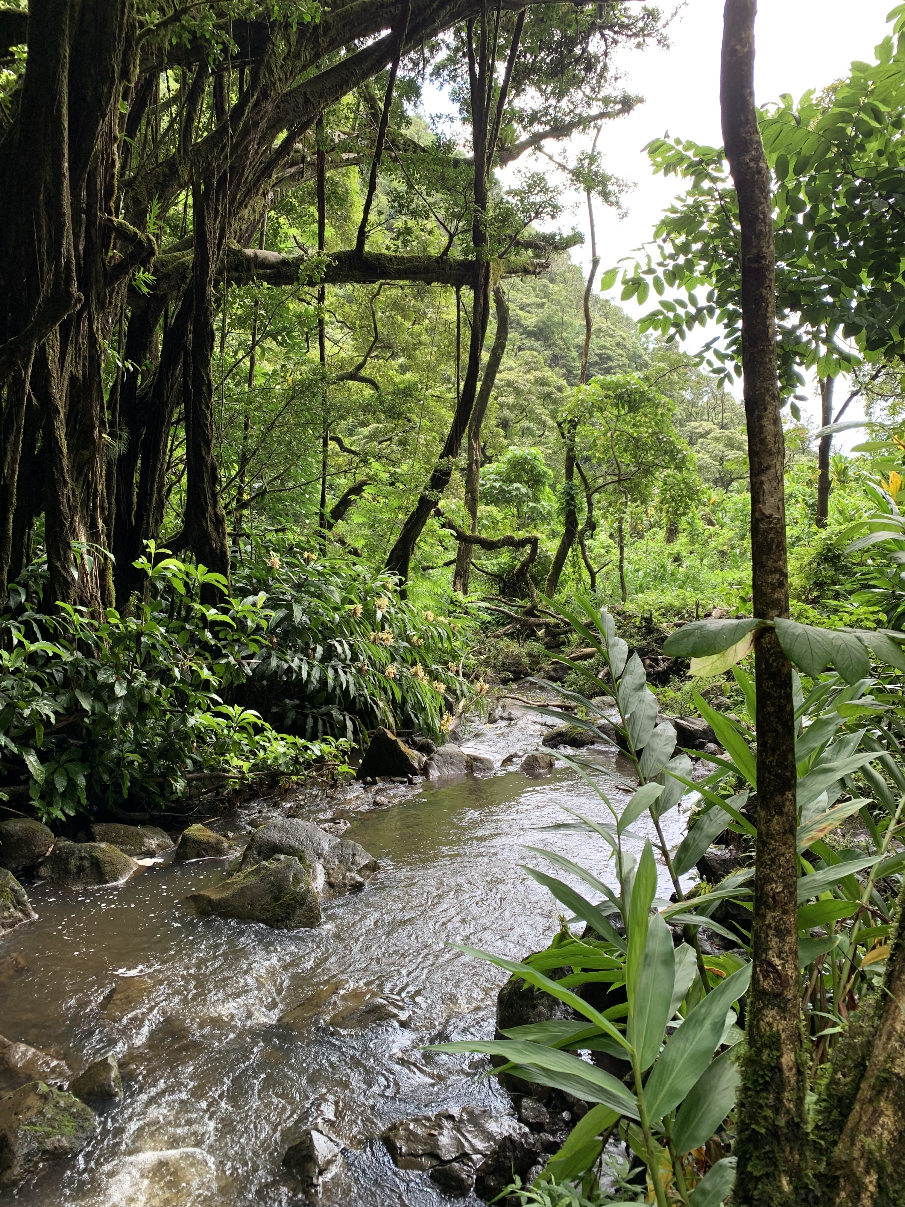1) Zurück wie wir gekommen waren über die Road to Hāna – eine Strecke von etwa 40 Meilen.