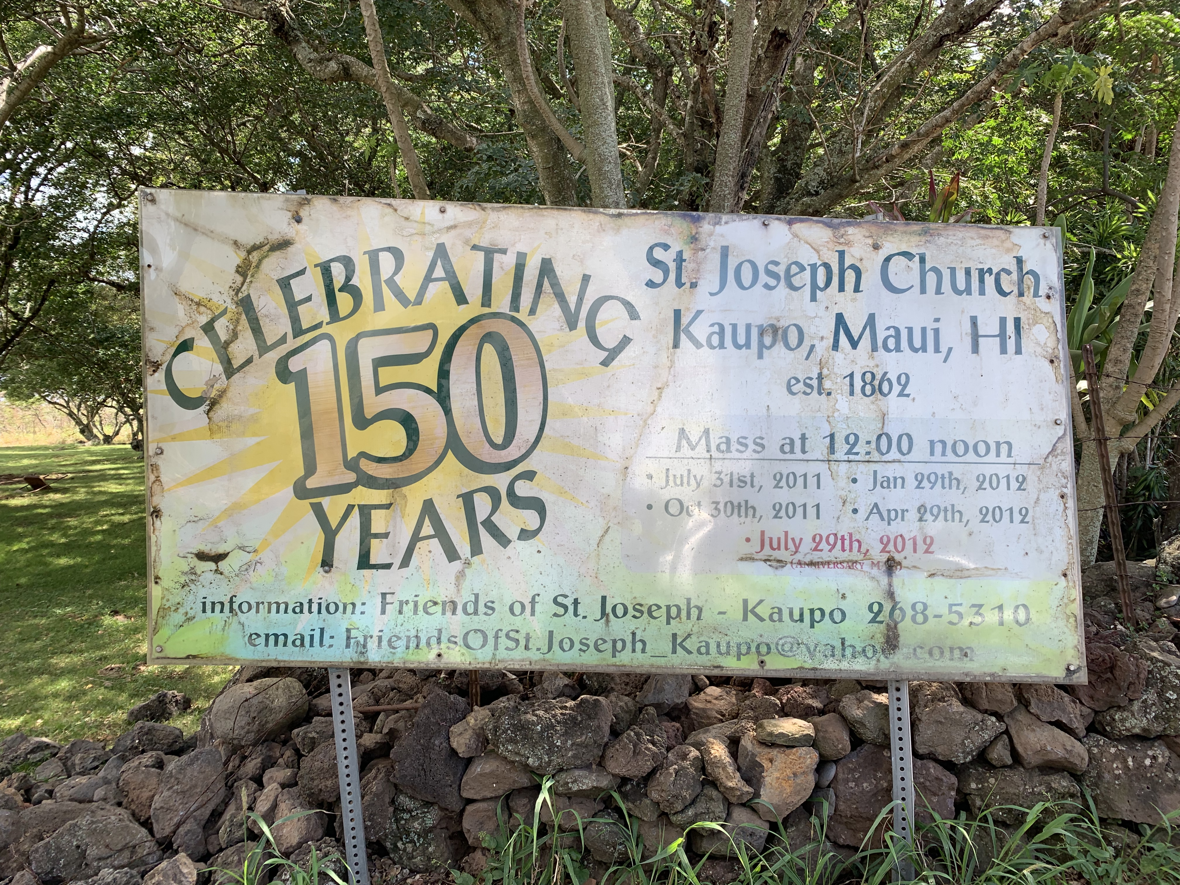 Noch eine kleine hübsche Erwähnung: Die letzte Kirche entlang der Straße um den Südteil der Insel ist übrigens die St Joseph Church in Kaupo. Dieser Teil der Insel ist allerdings so dünn besiedelt, dass es keine regelmäßige Messe gibt. Sie findet nur dann statt, wenn es im betreffenden Monat fünf Sonntage gibt. Die wichtigsten Termine kann man vermutlich dem Schild am Eingang entnehmen. Also die von 2011 und 2012. 😉
