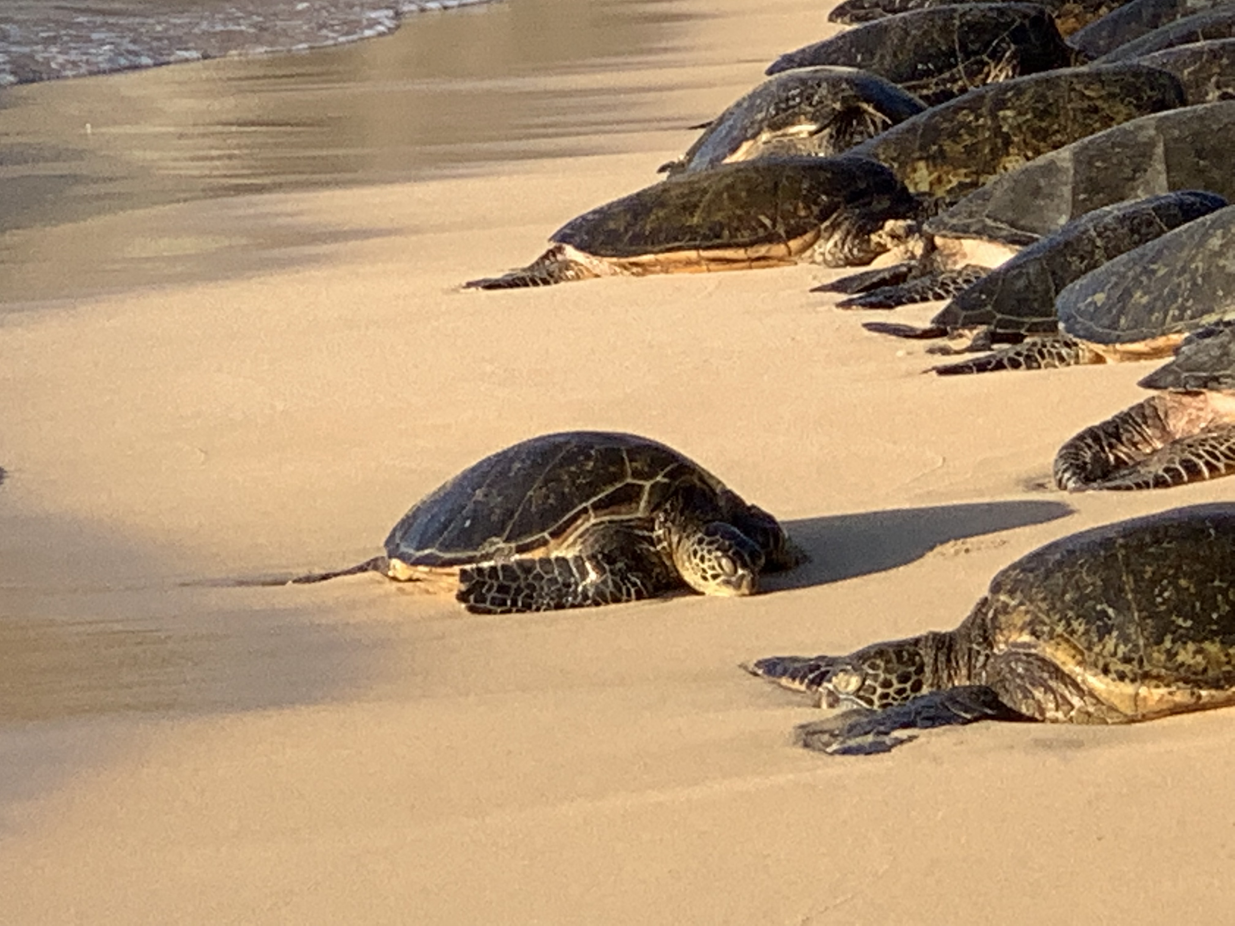 Am Abend dann – nachdem wir unser sehr hübsches Airbnb Häuschen (Bilder folgen) bezogen hatten – zum (sehr leckeren) Abendessen nach Paia. Wusstest ihr, dass es dort den Ho’okipa Beach gibt, an dem jeden Abend etliche Meeresschildkröten für die Nacht an Land kommen? Sooo viele Schildkröten. Nur für mich. 😀