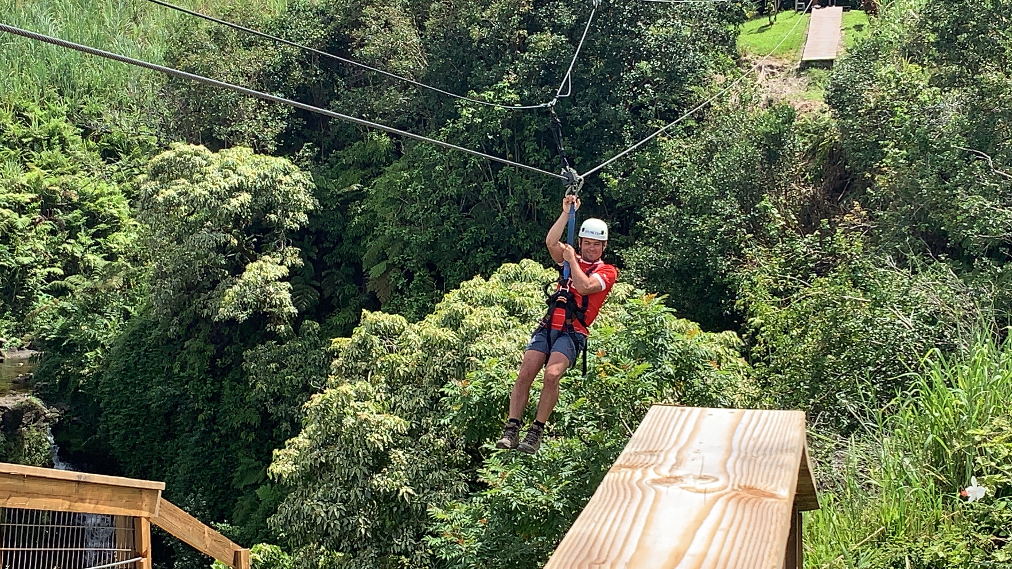 Es war Zeit für eine kleine „Belohnung“ für meine mitreisenden Adrenalinjunkies…. Deswegen ging es heute – nach einer kleinen Stärkung für die Mannschaft mit Tuna Sandwich und Avocado Wrap in Hilo – nach Honomu zur Skyline Adventure Zipping Tour. Sieben Ziplines davon zwei große über Schlucht, Fluss und Wasserfall. Zipping with a view! Sehr cool! 😎