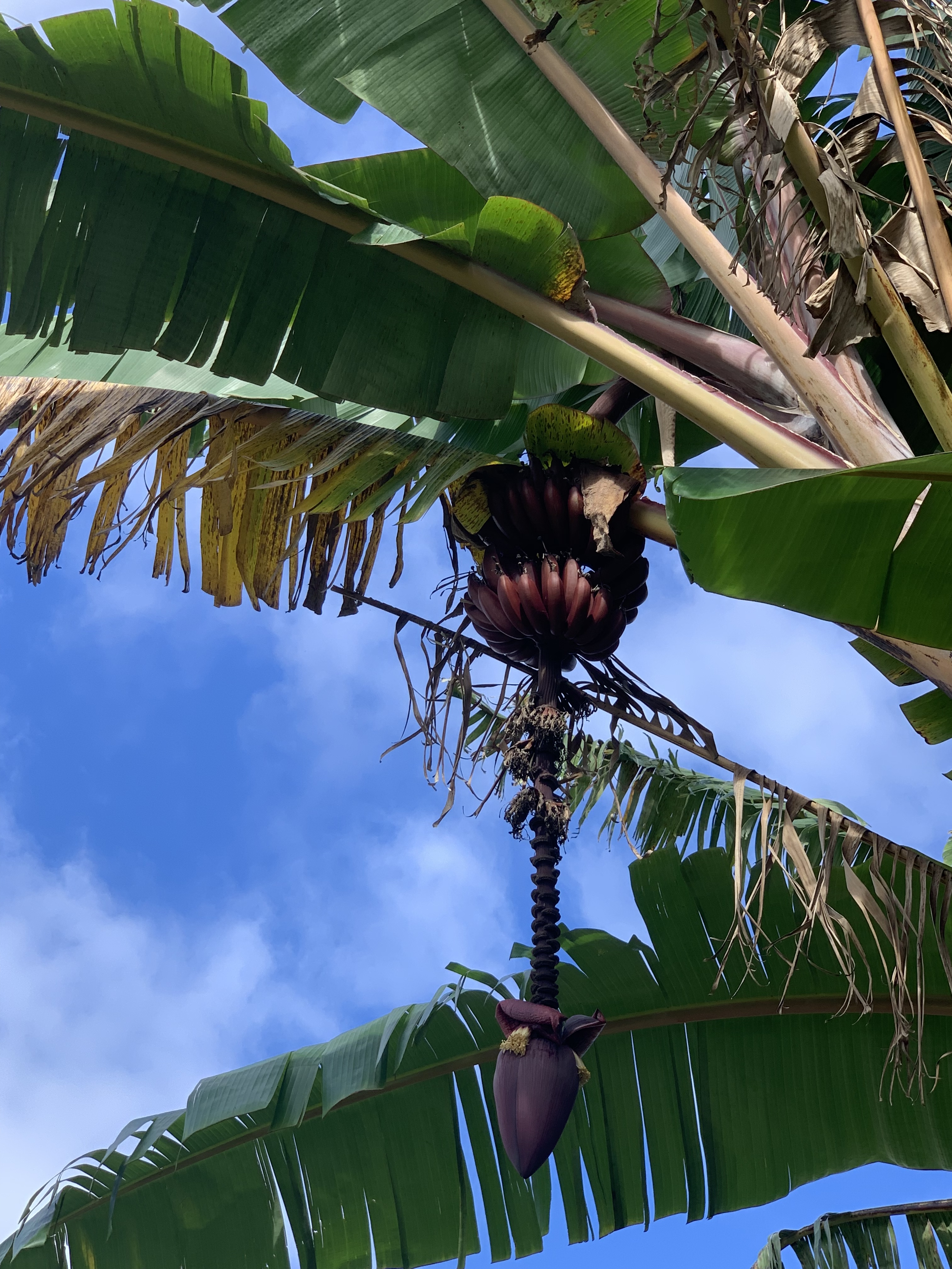 Zwischen den Zips immer mal wieder ein wenig botanische Bildung. Bananenpalmen (gelbe und rote)….