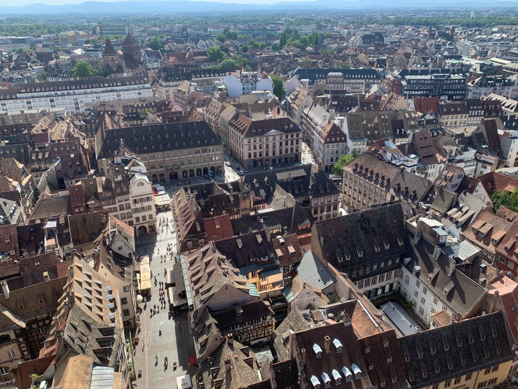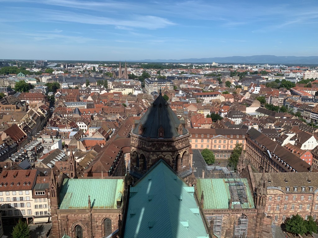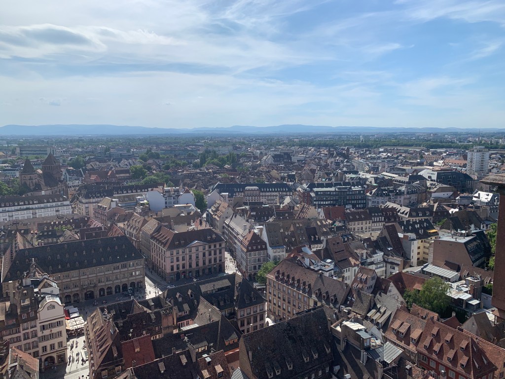 Die Aussicht über die Kathedrale und die Stadt mit der wunderschönen Altstadt und ihren alten Gebäuden sowie den modernen Bauten der Europäischen Union im Hintergrund ist den Aufstieg aber auf jeden Fall wert und runter zu geht es dann mit dem Sauerstoffgehalt im Blut auch wieder 🙂