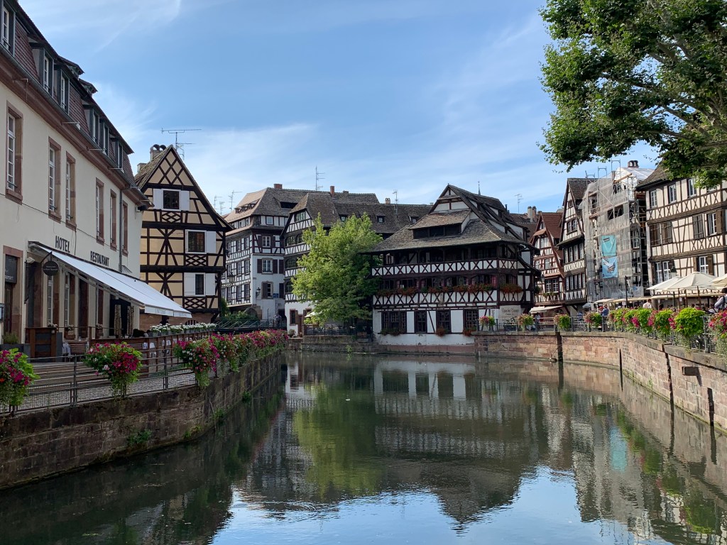 Wie hübsch Straßburg im Winter ist, habe ich euch schon beschrieben. Im Sommer gibt es natürlich keine Lichterketten, Weihnachtssterne und Kronleuchter in den Gassen. Aber es gibt Blumen an den Geländern, die Tische und Stühle der Restaurants und Straßencafés in jeder noch so kleinen Gasse, Straßenkünstler, Musiker und Sänger und überall Verkaufsstände für Eis, Crêpes und Galettes. Es ist wirklich wunderschön.