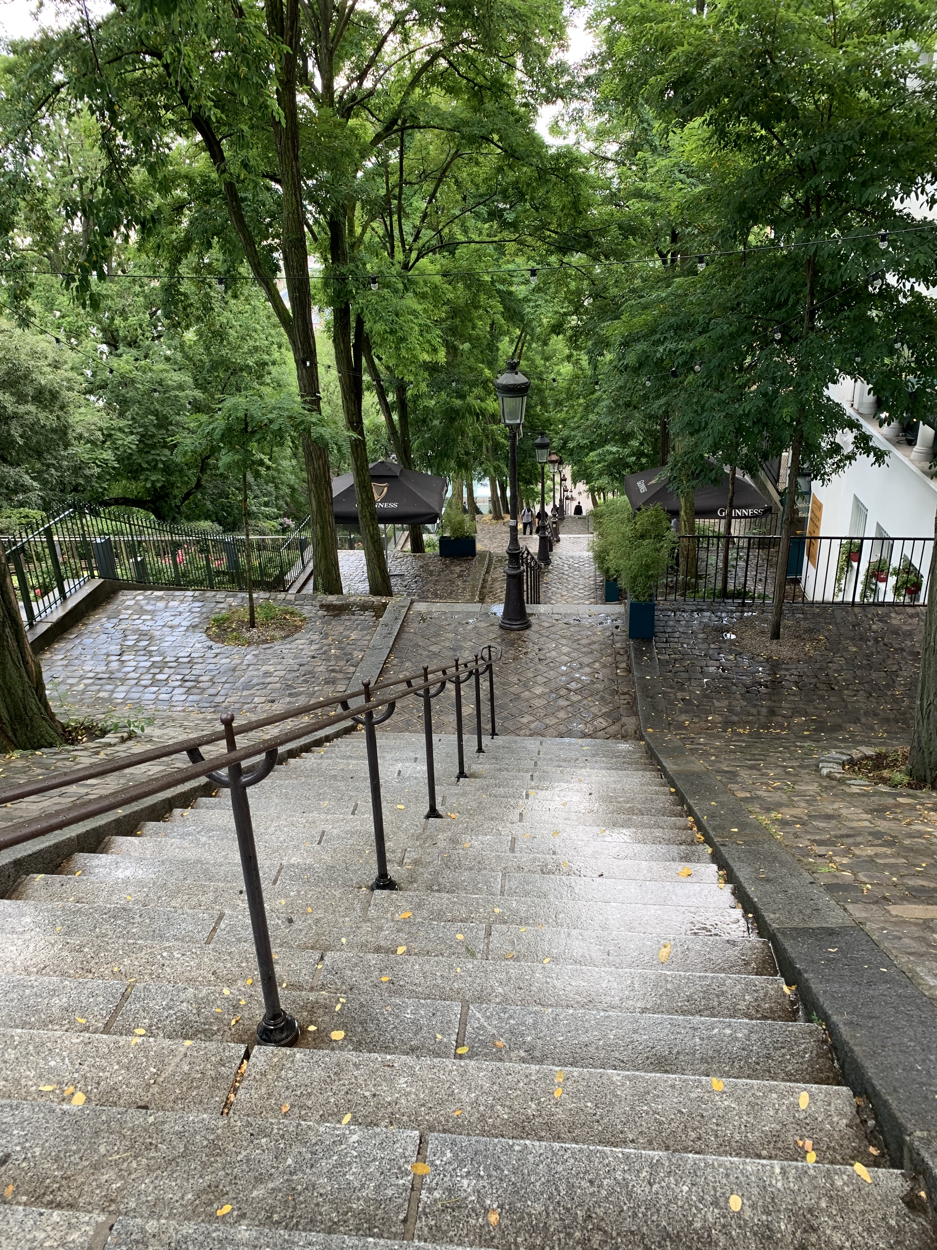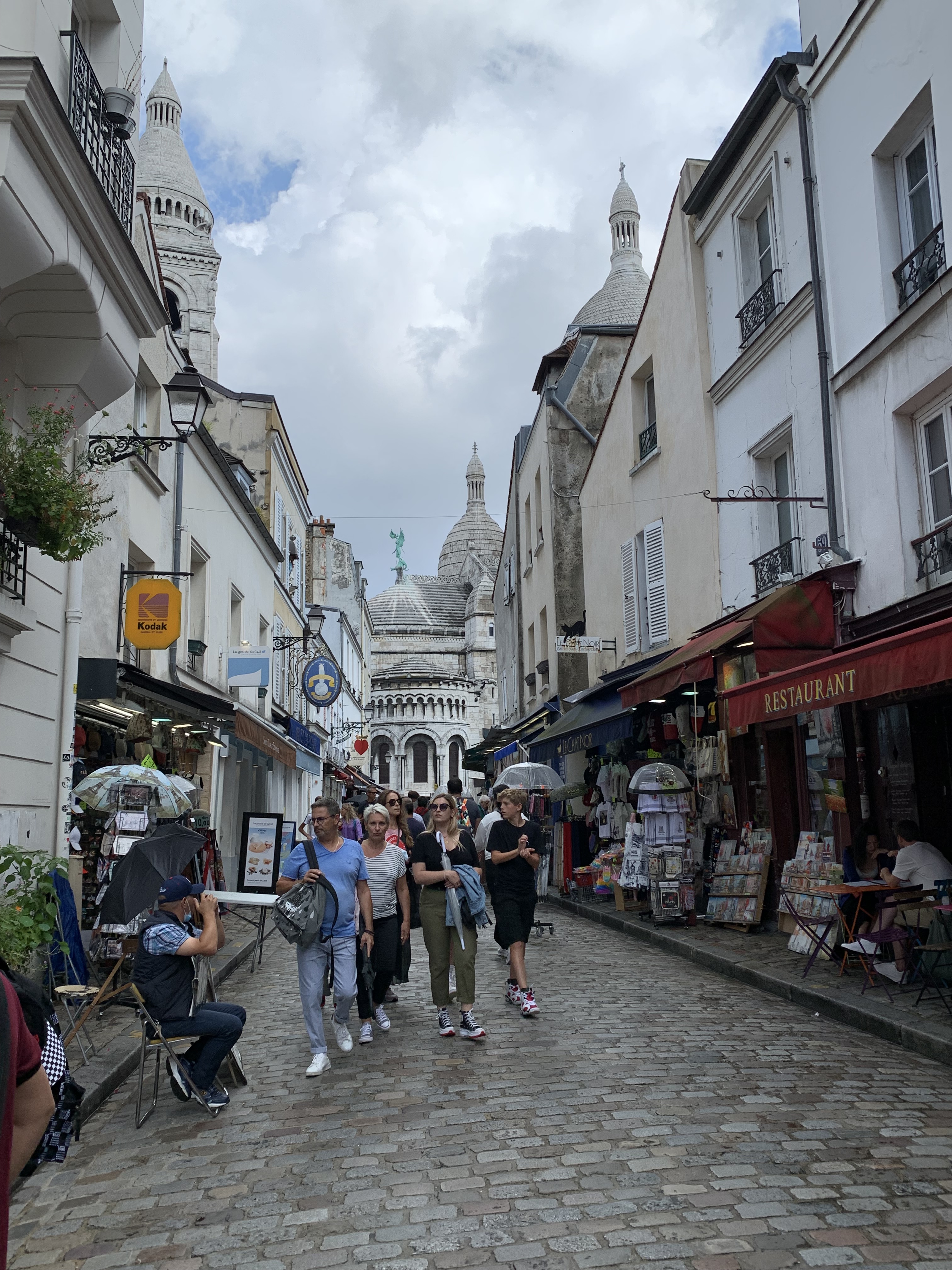 Ein Viertel, das sich generell (aber auch in dieser Hinsicht) ein wenig von den anderen Touristenzentren der Stadt abhebt, ist Montmartre mit der wunderschönen weißen Kirche Sacré-Coeur. Ein kleines Dorf in der Metropole Paris. Oben auf dem Hügel von Montmartre (schon der Weg dahin über die steilen Treppen mit ihren Bäumen und Gärten zu beiden Seiten ist ein Erlebnis) hat man eine wundervolle Aussicht über die ganze Stadt. In engen Gassen und auf kleinen Plätzen reihen sich Cafés, Ateliers und kleine Geschäfte eng aneinander. Für mich der schönste Ort der ganzen Stadt. Wenn dann irgendwann keines der Musketiere mehr in den Urlaub mitfahren mag, findet ihr mich an einem Sommertag in einem Café oben in Montmartre, wie ich den ganzen Tag bei Crêpes und Eclair den Straßenkünstler zuschaue. Kommt gern mit dazu. 🙂