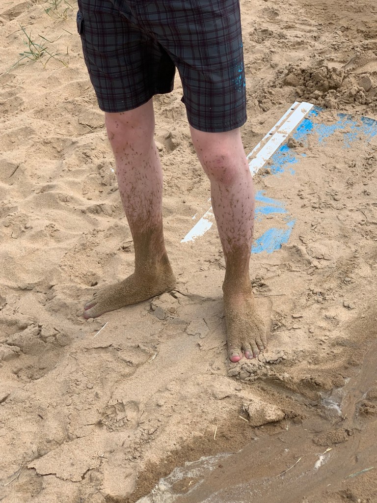 Bei unserer Ankunft war das Meer allerdings gerade nicht da. Wer nun meint, dass das zu Enttäuschung bei den jungen Mitreisenden führte, unterschätzt die Begeisterung von (größeren) Kindern für den Matsch und Schlamm, den das Meer bei Ebbe zurücklässt. 🙂