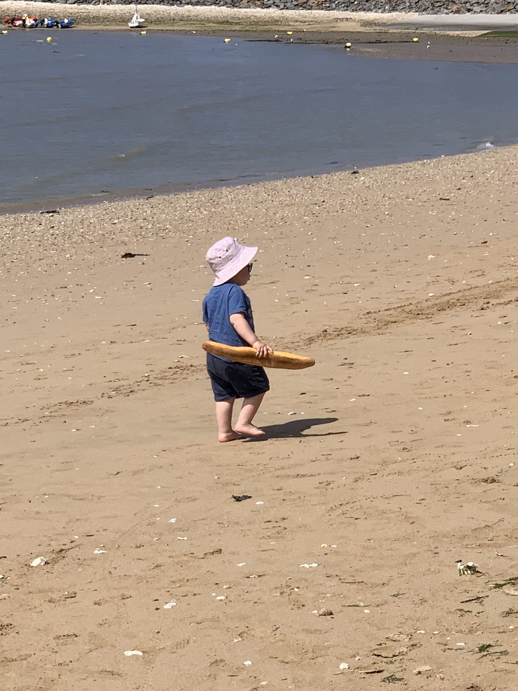 Und dann ist da noch dieses Bild… wer braucht schon Sandburg, Eimer oder Schaufel, wenn er ein Baguette am Strand dabei hat. 🙂
