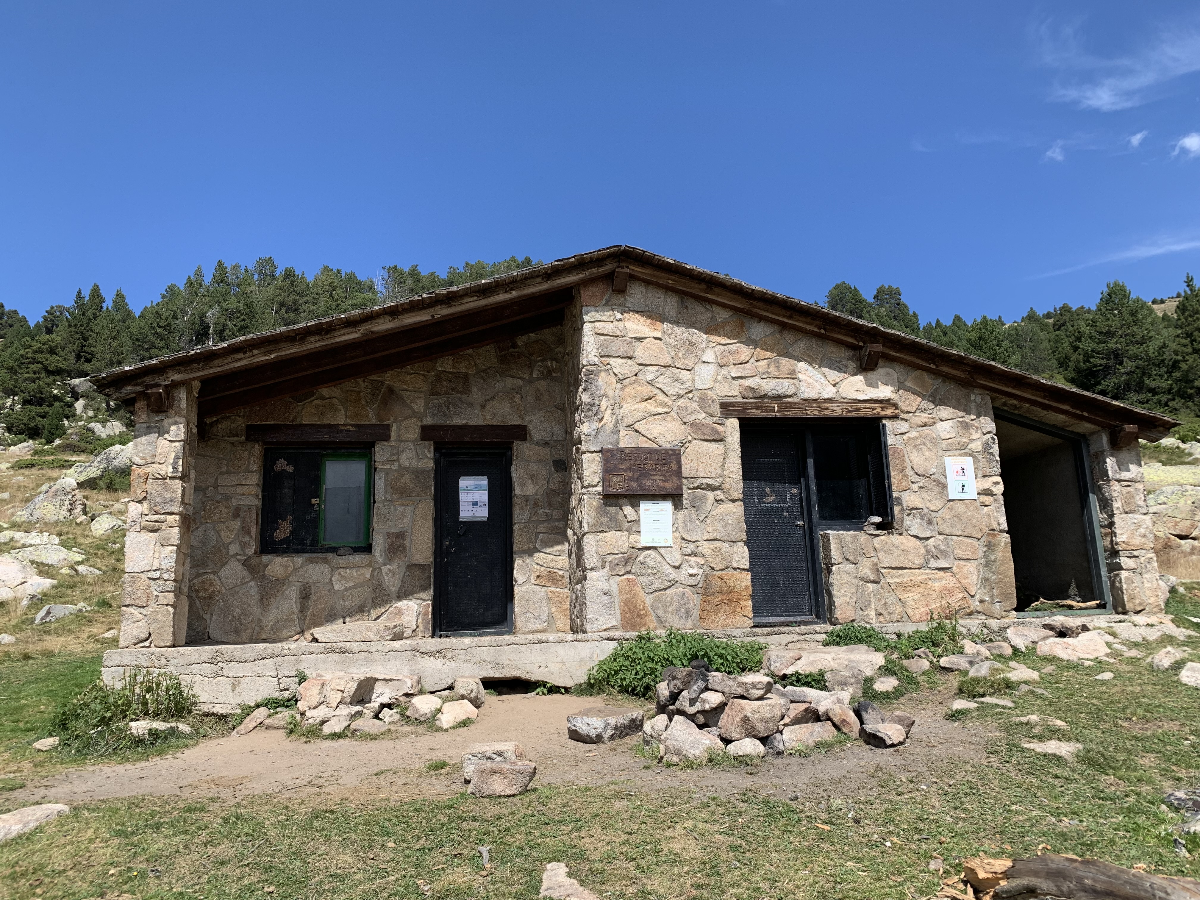 Ziel der Anstrengung war im Übrigen eine der Schutzhütten „Refugi de Perafita“. Die Hütte ist als Zwischen- und ggf. Übernachtungsstop für Wanderer gedacht und mit dem Nötigsten ausgestattet. Neben ein paar Pritschen gibt es auch einen kleinen Holzofen, ein wenig medizinische Ausstattung und ein paar Werkzeuge sowie eine Art Gipfelbuch, in das wir uns nach unserem heroischen Aufstieg nicht ohne ein wenig Stolz natürlich auch eingetragen haben (inklusive Stempel!). 🙂
