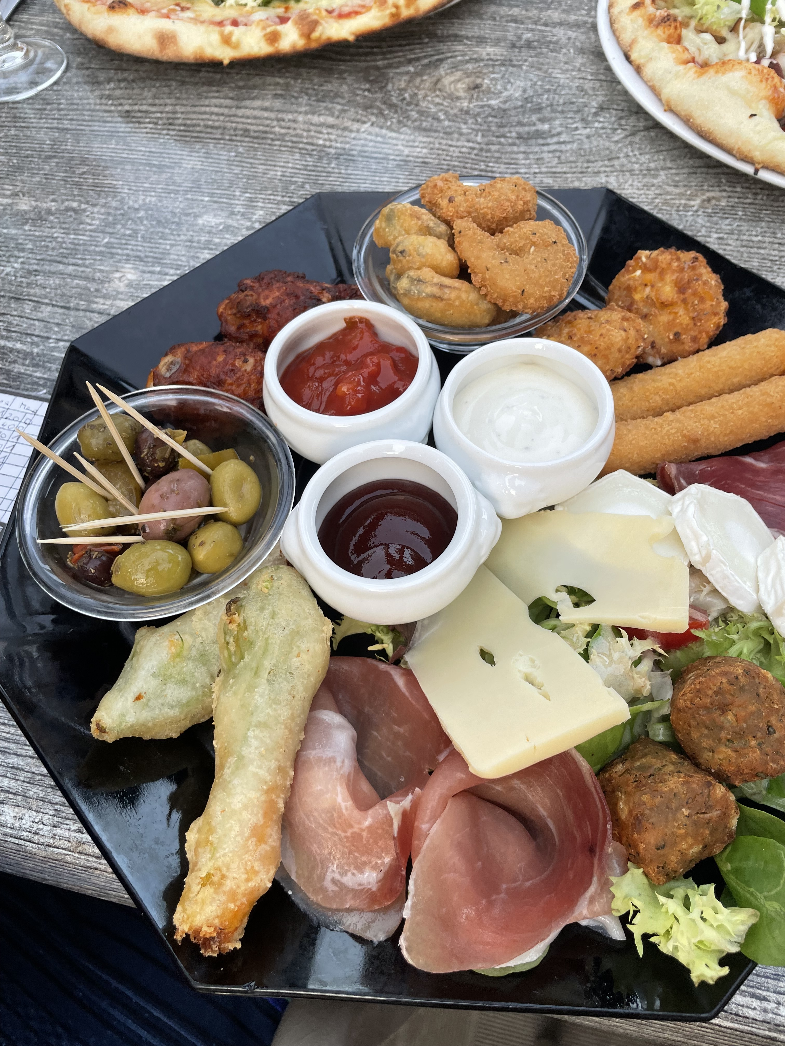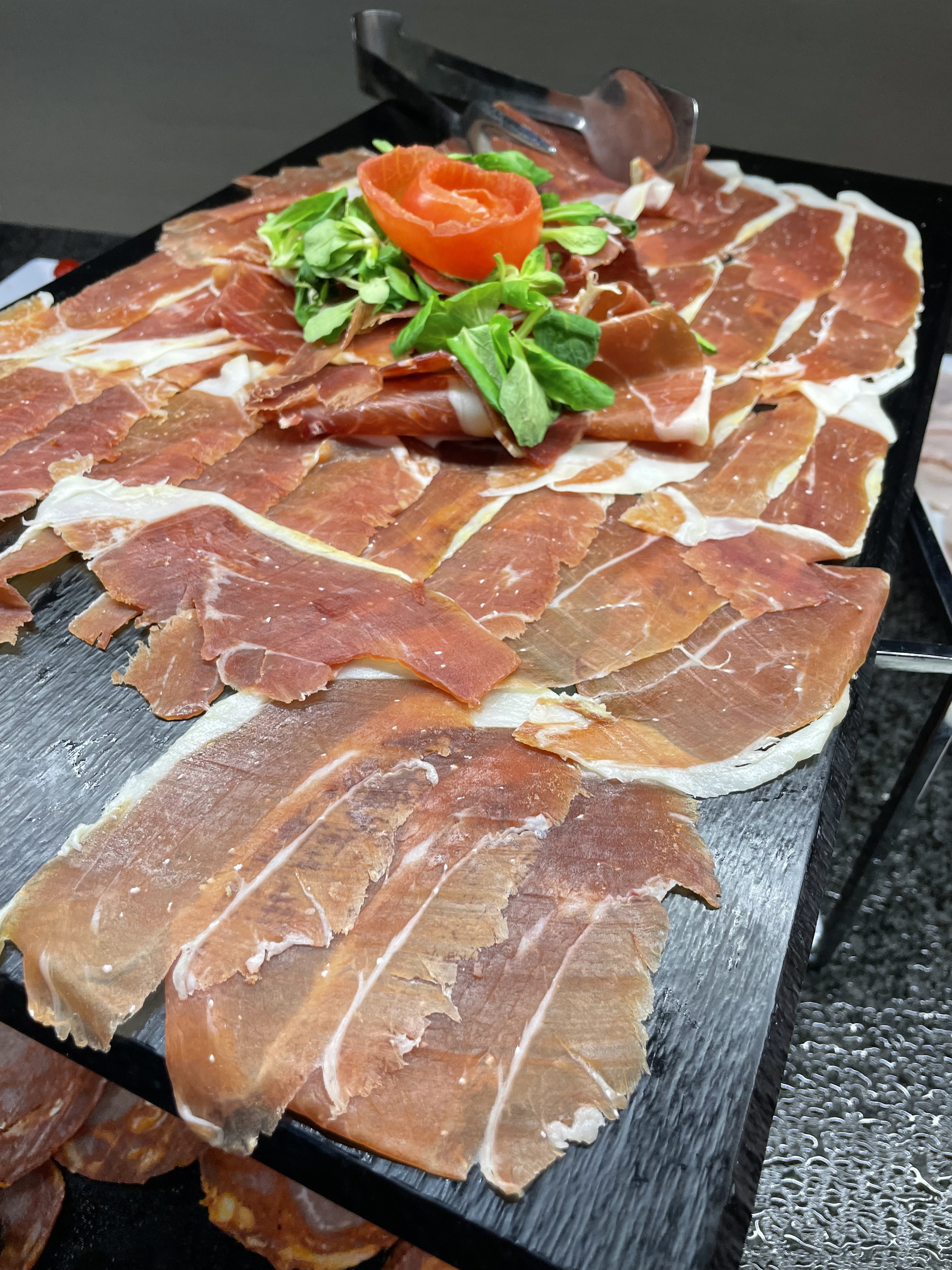 Gegenüber vom Waschsalon befand sich ein kleiner Supermarkt, in dem Isa schnell etwas zum Aufwischen besorgen wollte. Sie kam wieder mit einer großen Packung Küchentücher, einer Packung Schinken und etwas Käse. Und nachdem wir meine zweite Maschine mit Wäsche und Schaum befüllt und den Restschaum mit 4 Rollen Zewa beseitigt hatten, gab es zum Abschied als Dankeschön von Isabel noch eine Mini-Runde Tapas für alle (unten Symbolbilder von anderen Tapas-Momenten :-)). Das war eine Lebensfreude und Herzlichkeit. Ich hatte noch nie so viel Spaß beim Wäsche waschen und ich weiß nicht, ob das in einem deutschen Waschsalon auch so möglich gewesen wäre. 🙂