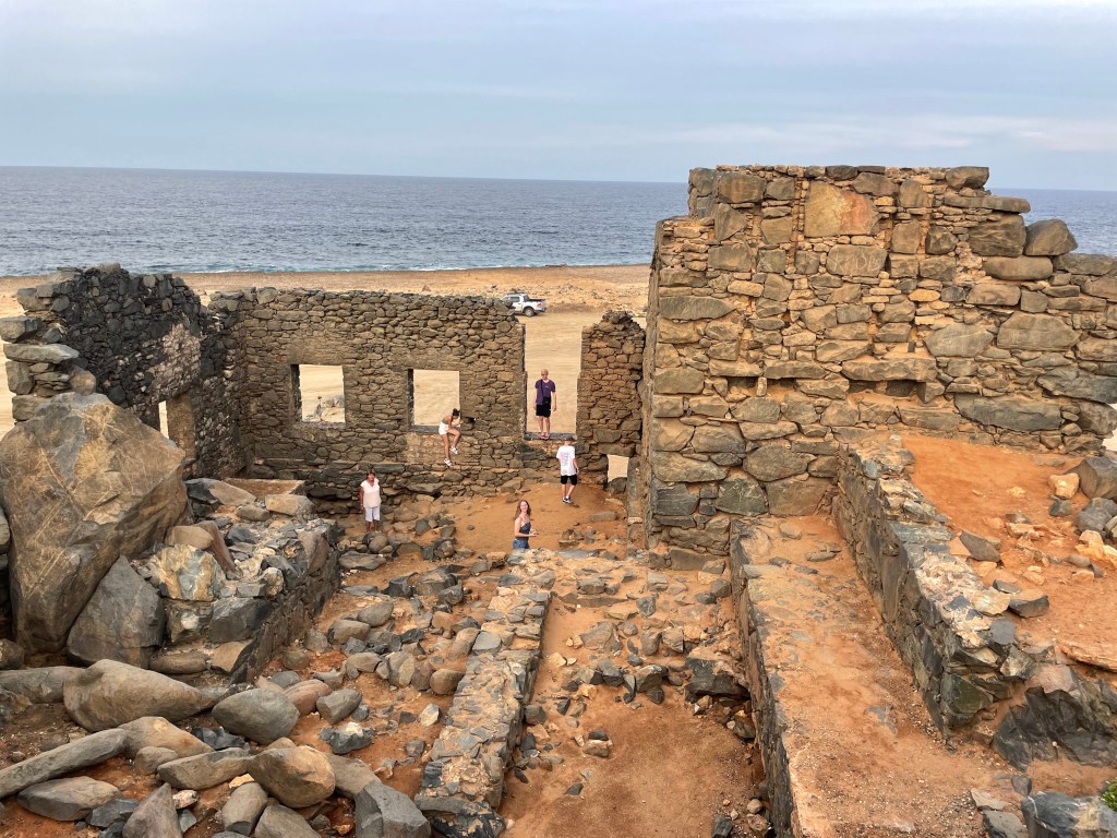 Die Goldmine klang für alle interessant und stand damit als erstes auf der Liste. 1824 wurde tatsächlich Gold auf Aruba gefunden. Um dieses aus dem Gestein herauszulösen, wurde das Gestein zermahlen und anschließend mit besonderen Chemikalien (Zyaniden oder Quecksilber) zersetzt. Auf Aruba gab es zwei Goldmühlen für diese Art der Goldgewinnung und die Ruinen dieser Gebäude kann man besichtigen. Allerdings ist es auch nur genau das… eine Ruine ohne irgendetwas dazu. Eigentlich eine sehr interessante Geschichte mit Goldrausch und allem, was dazu gehört, aber die muss man sich dann selbst dazu suchen. 😀