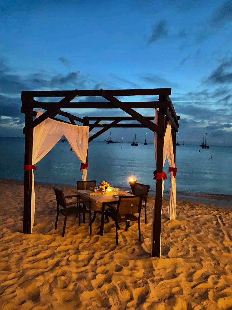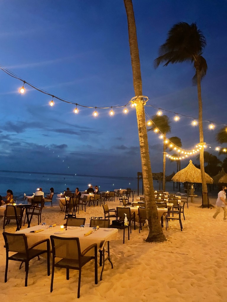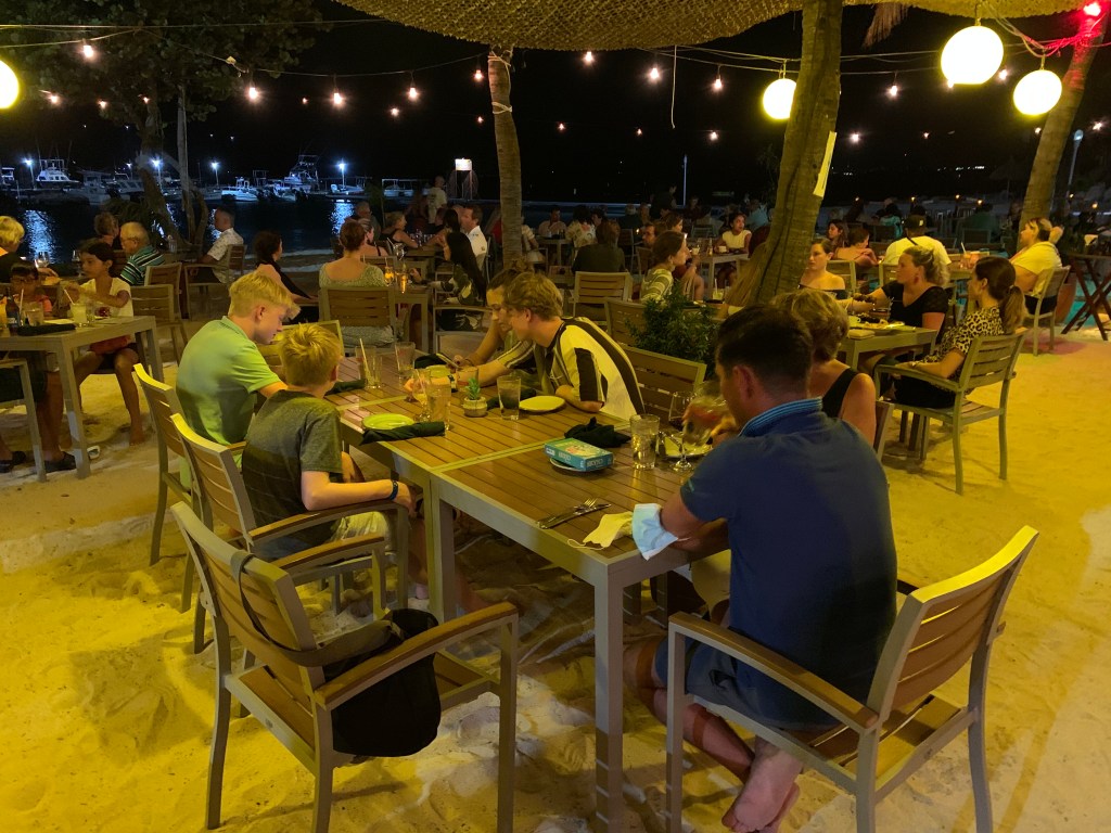 Noch ein letztes Abendessen in diesem hübschen Strandrestaurant. Was so wunderhübsch dekoriert und beleuchtet ist und wo es diesen leckeren Nachtisch und die guten Cocktails gibt. 🙂