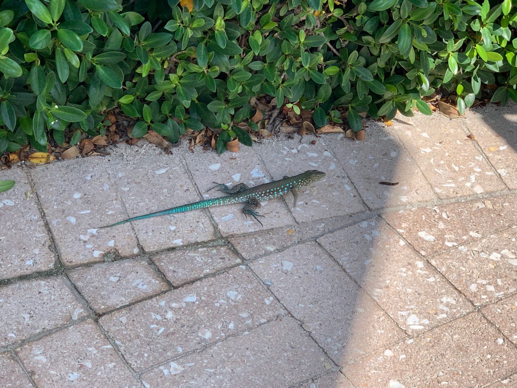 Noch einmal den Geckos und Iguanas zuschauen, wie sie darauf hoffen, dass von den Snacks der Urlauber etwas für sie abfällt. (Mein Liebling ist ja der ganz blaue mit den Punkten, aber der ist einfach zu schnell für mich und für ein vernünftiges Foto.)