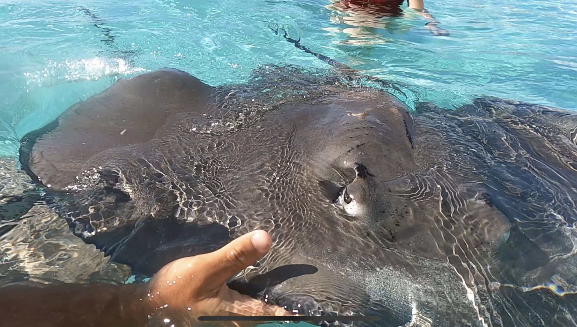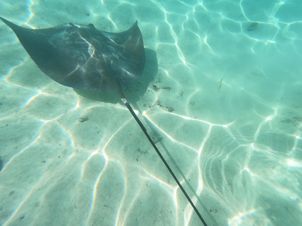 Die Rochen hatten keinerlei Berührungsängste (im Gegensatz zu uns :-D), schwammen an uns heran und über uns hinweg und ließen sich auch problemlos anfassen. Mit den Haien bestand eine Art unausgesprochener Nichtangriffspakt. Also… das hofften wir zumindest. 🙂