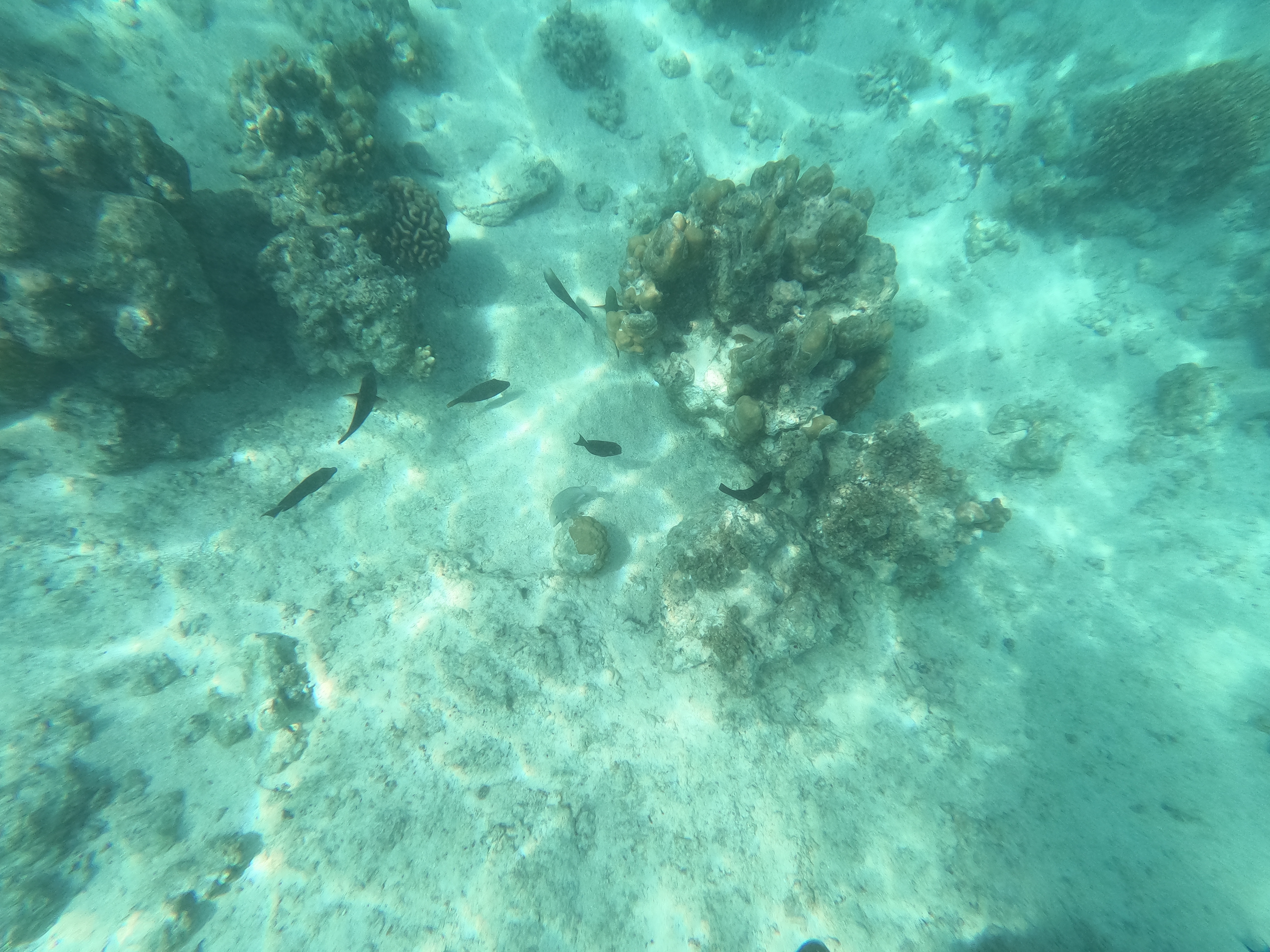So schnorchelten wir ein wenig vor uns hin – Korallen, ein paar Fische, wunderschönes, klares Wasser – alles wirklich zauberhaft. Im Vergleich zu Hawaii aber, wo wir von Unmengen an bunten Fischen und riesigen Meeresschildkröten verwöhnt worden waren, war hier im Riff verhältnismäßig wenig los.