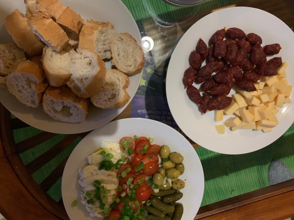 Kurz bevor wir wieder zuhause ankamen, machten die dunklen Wolken ihre Drohung war und es schüttet wie aus Eimern. Gut, dass unser Haus ein Vordach hat, unter dem sich auch bei Regen ganz hervorragend zusammensitzen und was kleines zum Abendbrot essen lässt. 🙂