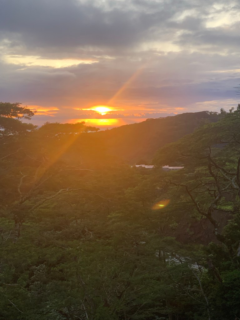 Nach einer sehr regenreichen Nacht klarte es am Morgen auf und wir bekamen einen sehr schönen, wenn auch ein wenig wolkenverhangenen Sonnenaufgang über dem Meer zu sehen.