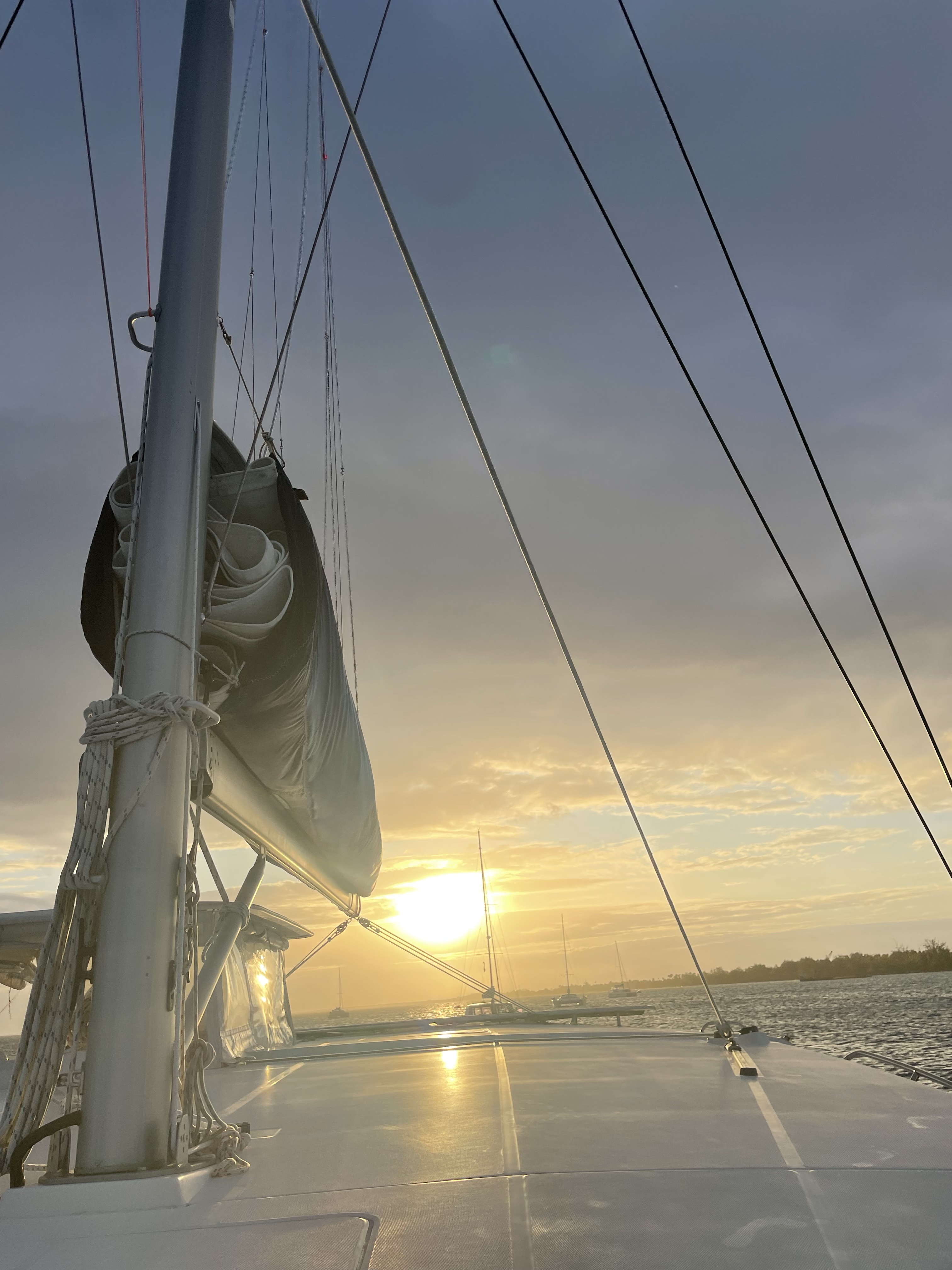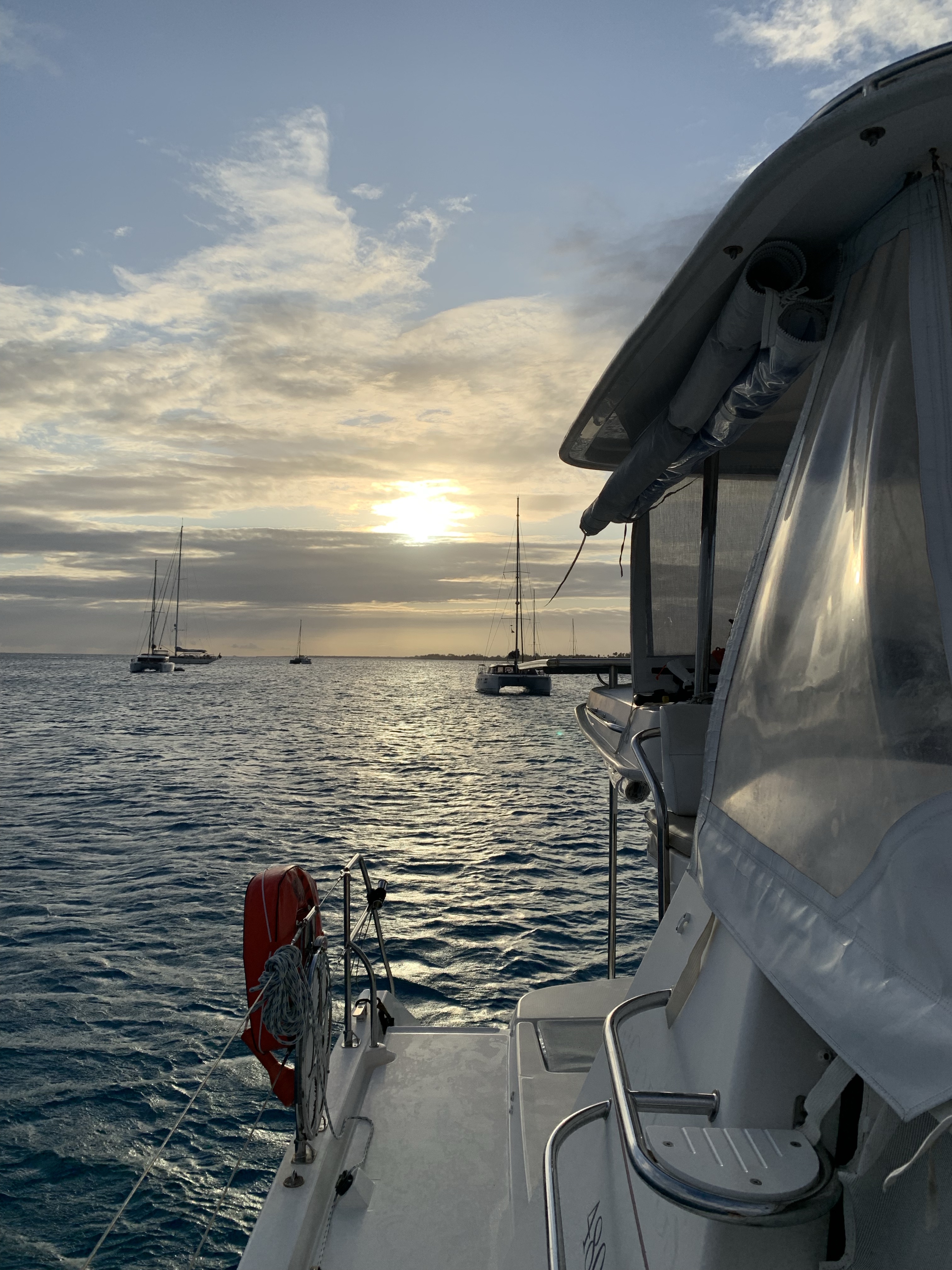 Da es schon recht spät am Nachmittag war, legten wir für den Tag nicht mehr ab. Der Wellengang war für mich auch an dieser ‘ruhigen’ Stelle bereits absolut ausreichend. 😀 Als Entschädigung gab es noch einen ganz zauberhaften Sonnenuntergang über der Lagune…