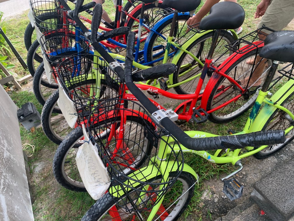 Das mit dem Fahrradfahren ist so entspannt wie alles hier. Und wir hatten Glück mit unseren Leihrädern – vom Zustand her waren sie zwar vergleichbar mit den Mietwagen, die wir bisher hatten, aber fast alle hatten eine funktionierende Bremse. Der Rest lässt sich irgendwie mit reichlich Klebeband organisieren. Was braucht man mehr?!