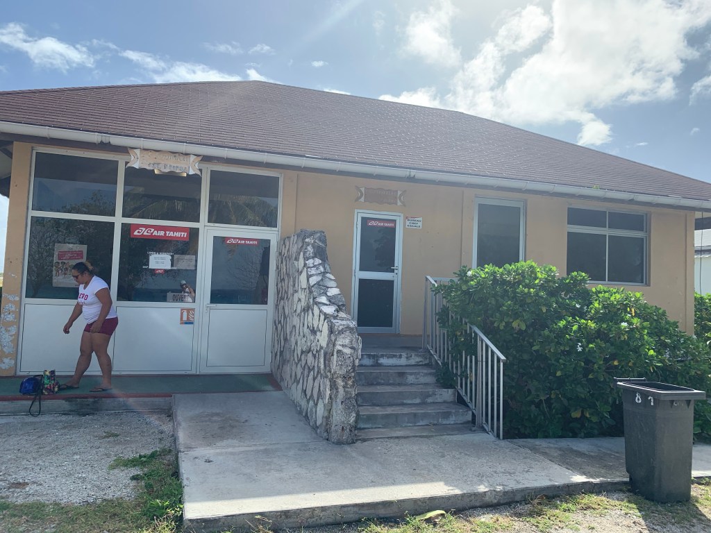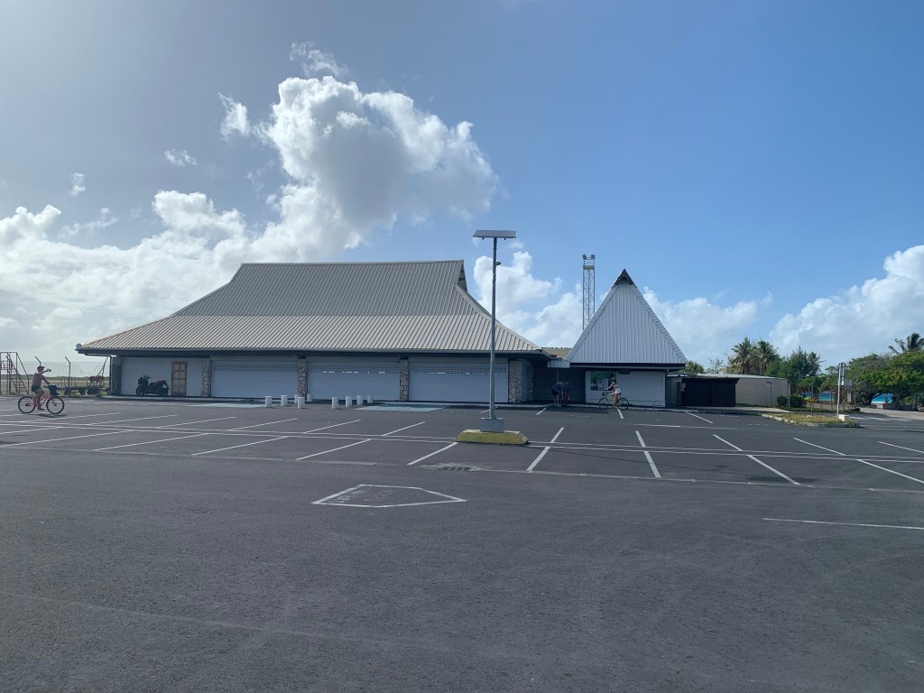 Die Highlights entlang der Strecke: der Flughafen (als wir vorbeikamen gerade geschlossen, es finden ja nur ein oder zwei Flüge pro Tag statt). Direkt daneben die Bank und eine Filiale der Fluggesellschaft.