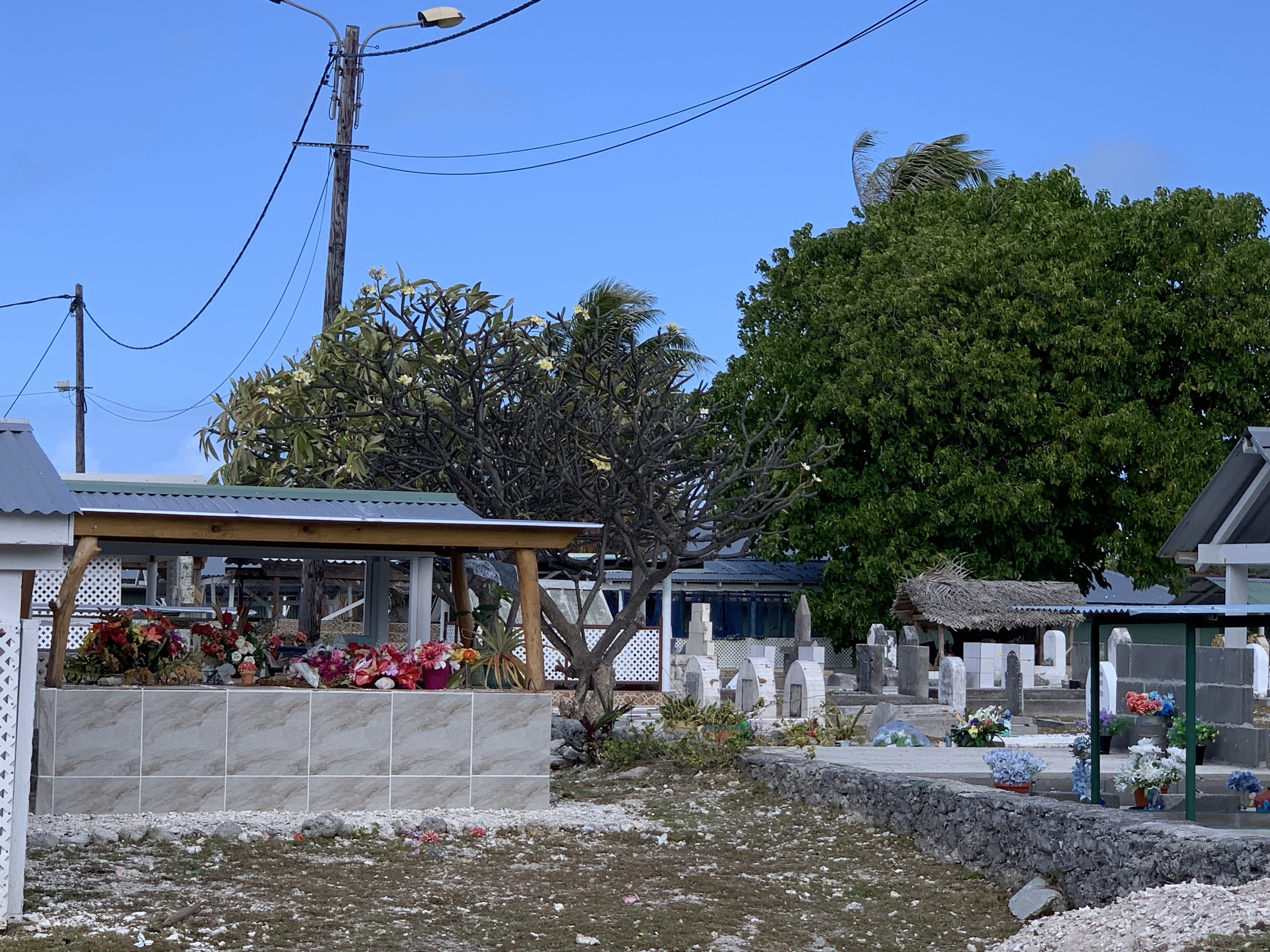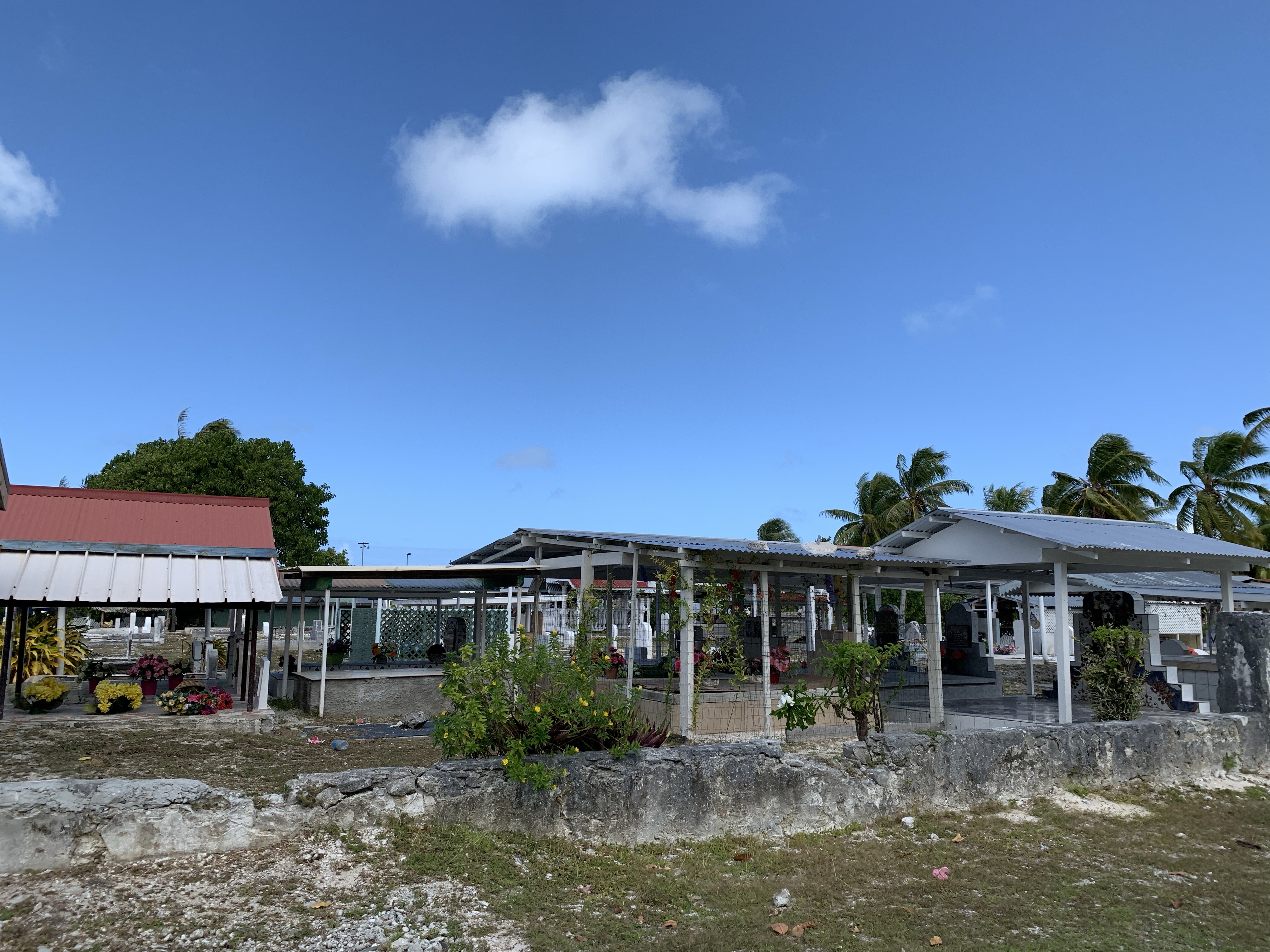 Der Sturm hatte auch ein paar Wolken und etwas Regen gebracht, aber da es hier keine Berge gibt, die die Wolken festhalten, dauert jeder Regen hier tatsächlich nur wenige Minuten. Die Taktik der Tahitianer hier, wenn es anfängt zu regnen, so wurde es uns erklärt: T-shirt ausziehen, vollregnen lassen, in der Wärme trocknen, T-shirt wieder anziehen. 😀
