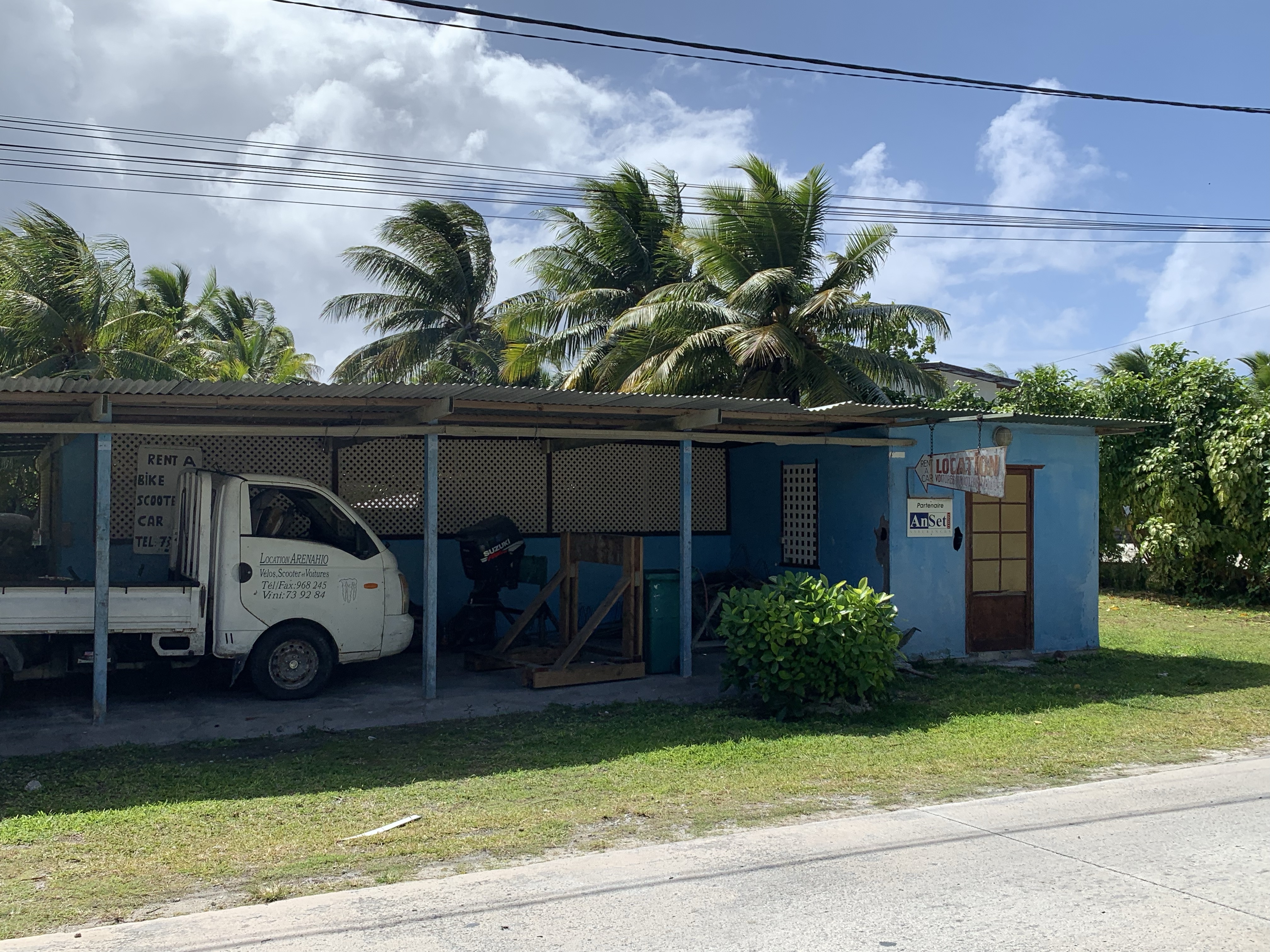 Mein Favorit – die vertrauenerweckende Werkstatt der Insel. 😀 Und hatte ich schon erzählt, dass die Straßenbegrenzungen hier aus rotangemalten Kokosnüssen bestehen?