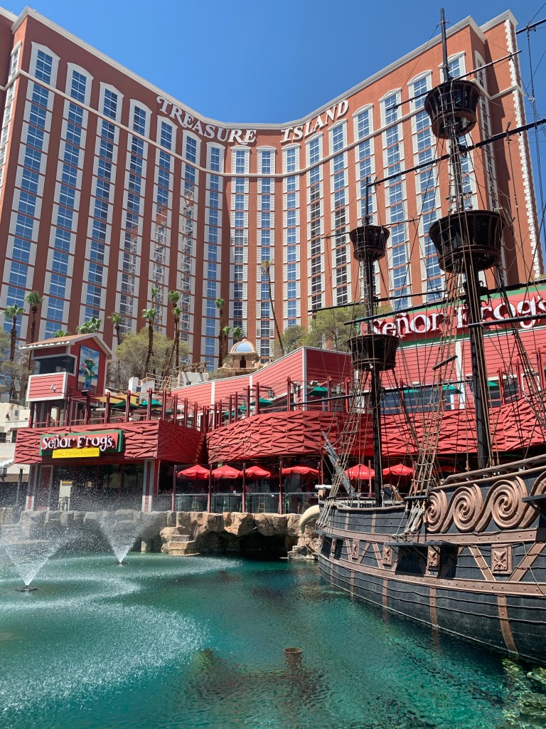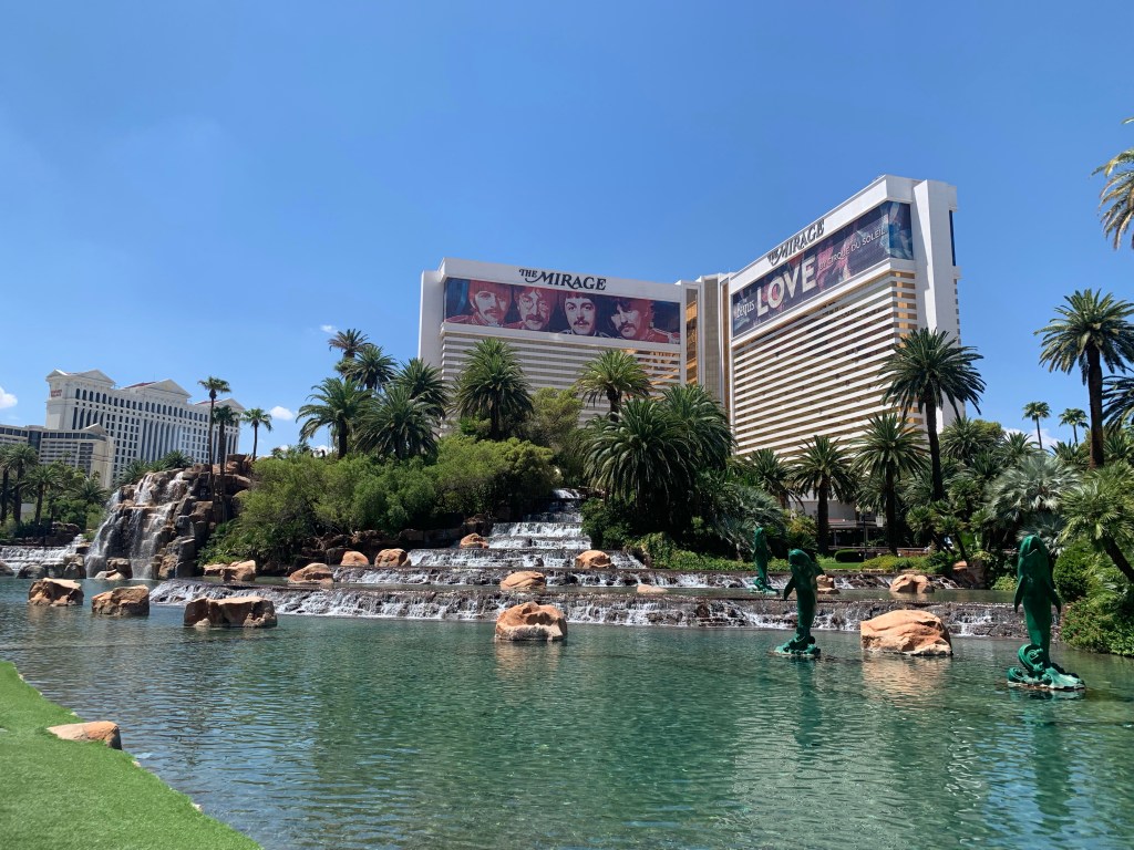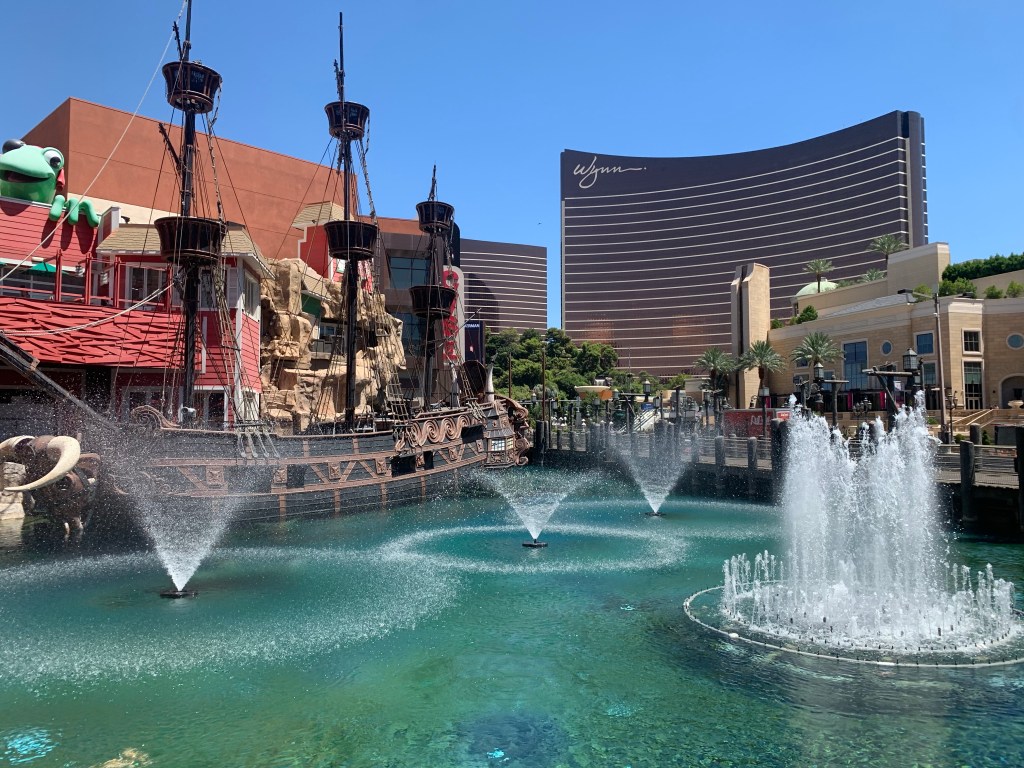 Man weiß bei der Aufzählung der vielen berühmten Hotel gar nicht, wo man anfangen soll. Da sind die mittelgroßen Komplexe wie das Wynn mit seinen ‚Wasserfällen‘ und dem riesigen See auf den nachts Bilder und Shows projeziert werden. Da ist natürlich der Trump-Tower – das dritthöchste Gebäude der Stadt. Und da sind die ein wenig in die Jahre gekommenen Klassiker wie das Treasure Island Hotel.