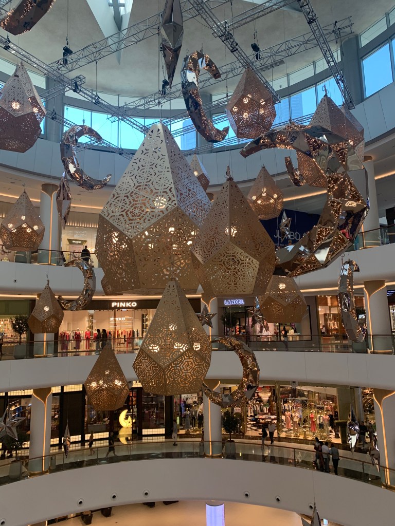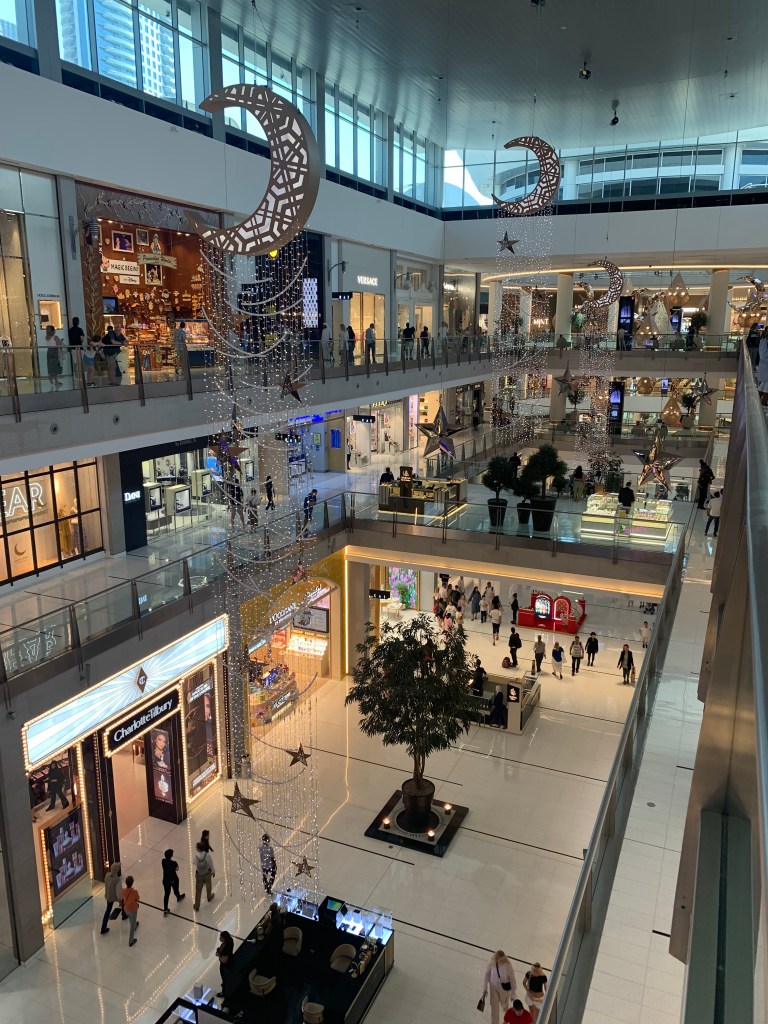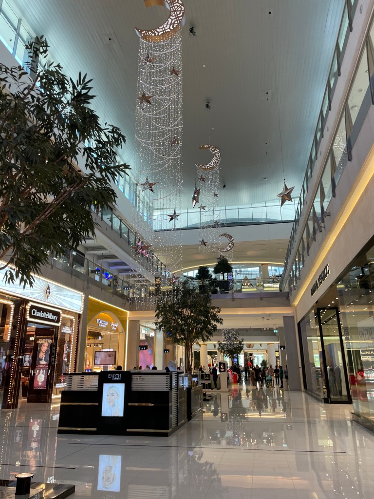 Unser erster Stopp – die Dubai Mall gleich neben dem Burj Khalifa – war für den Ramadan ebenso wie die großen Straßen der Stadt besonders festlich geschmückt. Das riesige Aquarium und die Eislaufbahn haben wir diesmal allerdings nur von außen bewundert. Wir hatten noch ein besonderes Ziel für den heutigen Tag etwas weiter außerhalb…