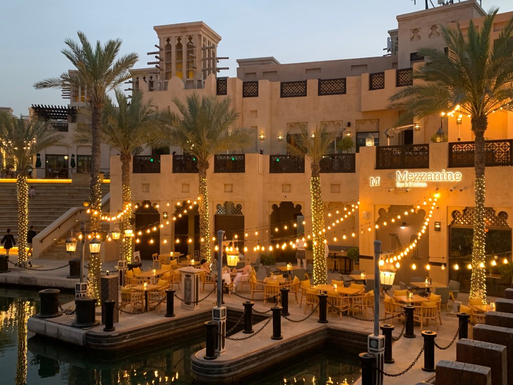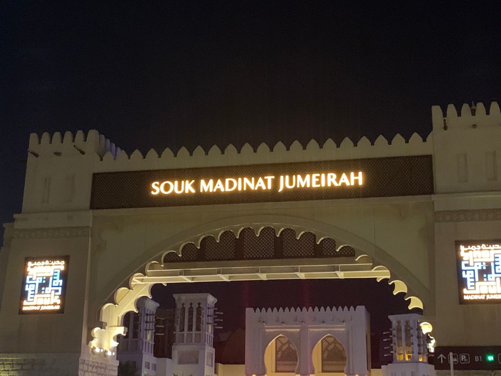 Und natürlich kamen wir auch nicht umhin, noch einen letzten Souk zu besuchen. Der Souk Madinat in Jumeirah ist allerdings mit den letzten Märkten, auf denen wir unterwegs gewesen waren, nicht zu vergleichen. Hier wurde ein traditioneller arabischer Markt in die moderne Welt gebracht. Und mit seiner perfekten Lage direkt am Wasser, mit der wunderschönen Beleuchtung und zahlreichen Veranstaltungen, ist der Markt vor allem in den Abendstunden eine ganz besondere Attraktion.