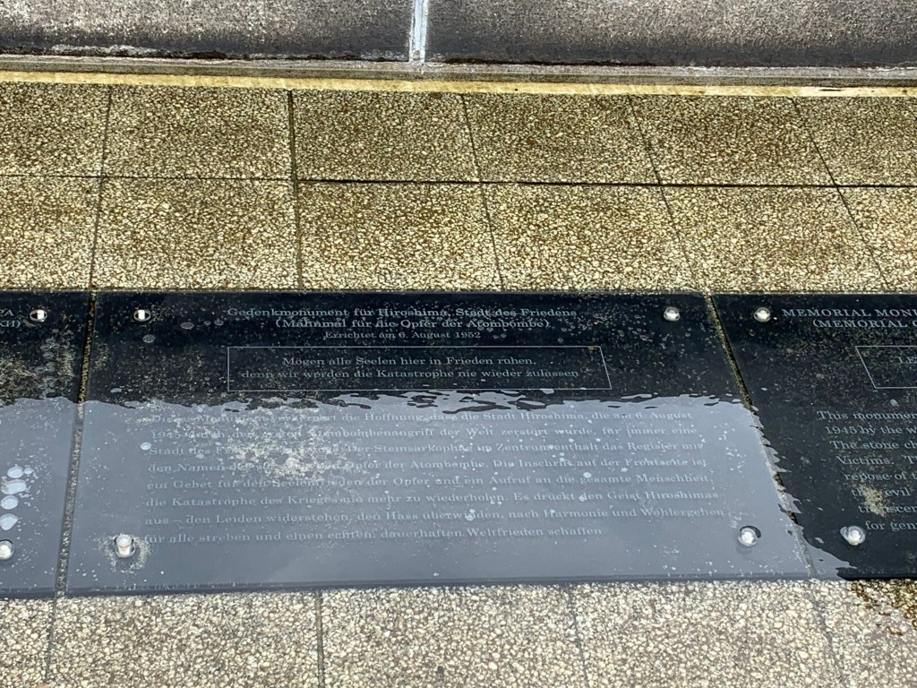 Es ist ein besonderer Ort, der Friedenspark am Motoyasu Fluss… voller Denk- und Mahnmäler, voller Traurigkeit und Ungläubigkeit. Aber auch voller Hoffnung und den ungebrochenen Wunsch, dass sich so ein Unglück nie wiederholen darf. So wie es im Gedenkstein des Kenotaph geschrieben steht:
