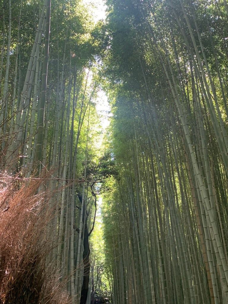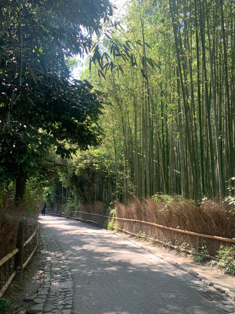 Und so beschlossen wir, uns vorerst auf einen kleinen Ausflug zum Arashiyama Bambuswald zu beschränken, in der Hoffnung, dass es in einem Wald eventuell etwas kühler ist. Das war es tatsächlich auch. Allerdings waren wir offensichtlich nicht die einzigen mit dieser Idee, denn es waren außer uns gefühlt noch alle Touristen und Einwohner von ganz Kyōto in Arashiyama unterwegs.