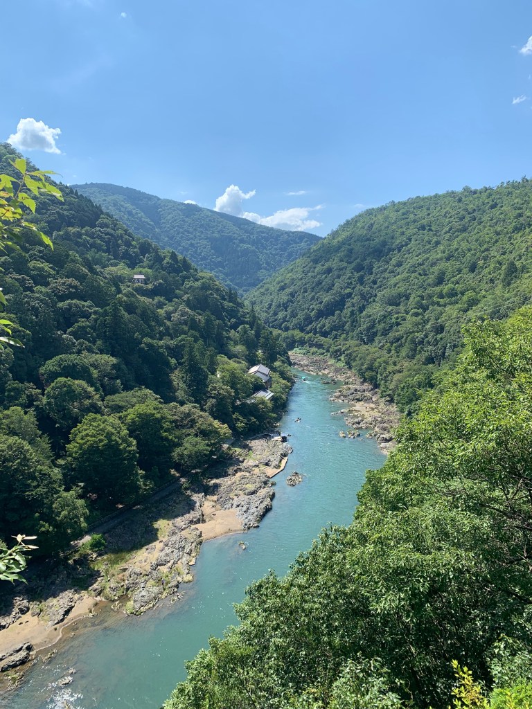 Unabhängig davon ist es ein wirklich hübscher wenn auch kleiner Wald mit riesigen Bambuspflanzen (In der Kategorie ‚unnützes Wissen‘ kann ich an dieser Stelle mitteilen, dass es sich bei Bambus keineswegs um einen Baum handelt, sondern vielmehr um ein Süßgras.) und einer wunderschönen Aussicht auf den Katsura-Fluss. (Und weiter oben wurden es auch merklich weniger Menschen, so dass es doch noch die Möglichkeit für ein paar touristenfreie, blogtaugliche Bilder gab. :-))