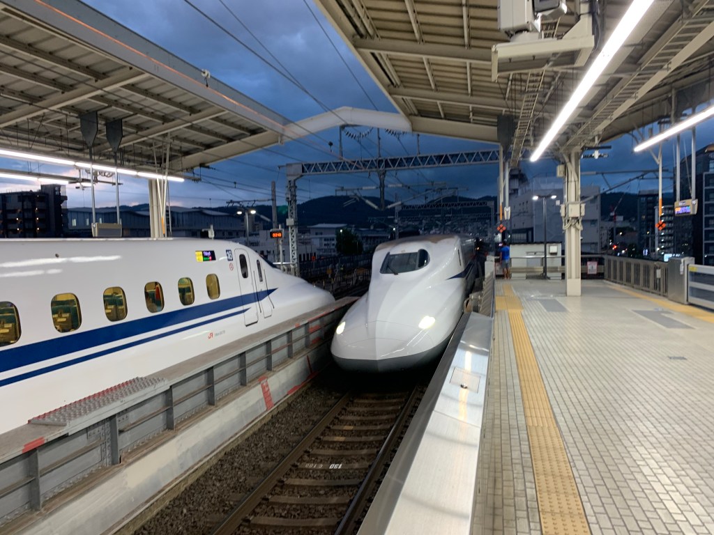 Wie wir gelernt haben, ist das Geheimnis der zuverlässigen und verrückt schnellen Verbindungen in Japan mit dem Shinkansen weniger die hohe Spitzengeschwindigkeit des Zuges an sich (angeblich kann der ICE wohl – zumindest in der Theorie – in Spitze sogar ein wenig schneller fahren als der Shinkansen) als vielmehr das fast vollständig vom sonstigen Zugverkehr separierte Schienennetz und die auch auf längeren Stecken gleichbleibend andauernd hohe Durchschnittsgeschwindigkeit. Es war schon beeindruckend, in welcher Frequenz und uhrwerkartigen Präzision ein Zug nach dem anderen im Bahnhof ein- und ausfuhr.