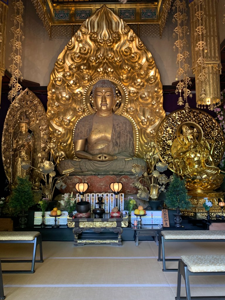 Hübsche Nebengeschichte dazu… in den 50er Jahren bastelten Schulkinder etwas 1,80m große Sandalen für den Buddha, damit dieser durch ganz Japan reisen kann und nicht barfuß gehen muss. Diese Schuhe werden nun etwa alle drei Jahre neu hergestellt und ersetzt.
