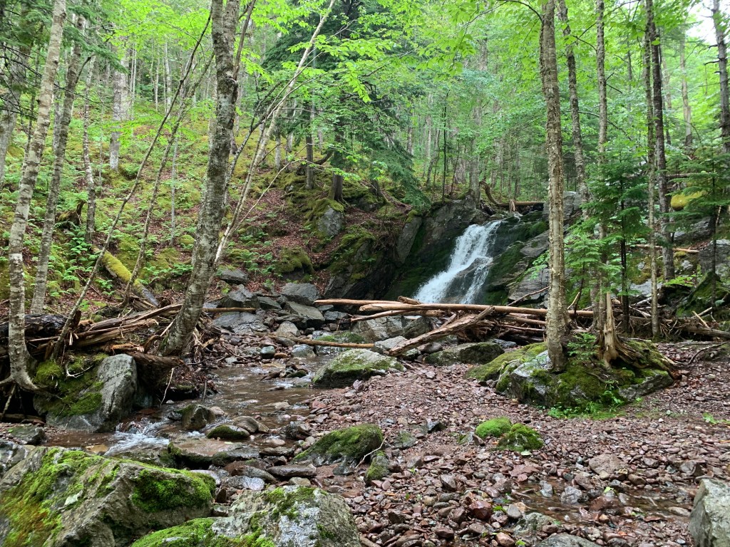 Bei unserer Ankunft zeigte sich Cape Breton Island allerdings von seiner eher nassen, verregneten Seite, so dass wir die Fahrt entlang des Cabot Trails und die geplante Wanderung auf dem Skyline Trail (der eine besonders großartige Aussicht und Szenerie zu bieten haben soll) in der Hoffnung auf besseres Wetter auf morgen verschoben. Ersatzweise fiel die Wahl auf den Besuch des Alexander Graham Bell Museums mit kurzen Zwischenstopps bei ein oder zwei Wasserfällen entlang des Weges.
